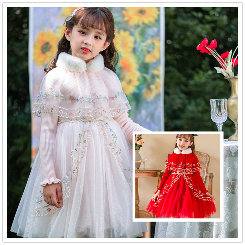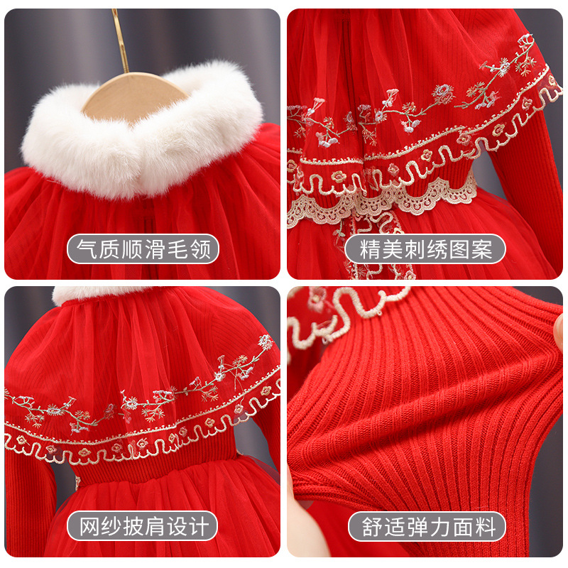 高档女童毛衣公主裙春秋新款儿童新年装红色连衣裙中大童秋冬衣服 投诉