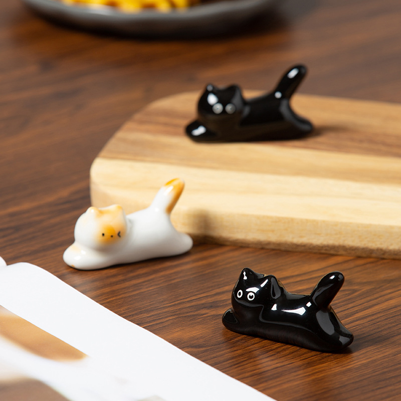 手绘釉下彩可爱猫咪造型陶瓷筷架筷托创意萌趣暹罗猫迷你摆件