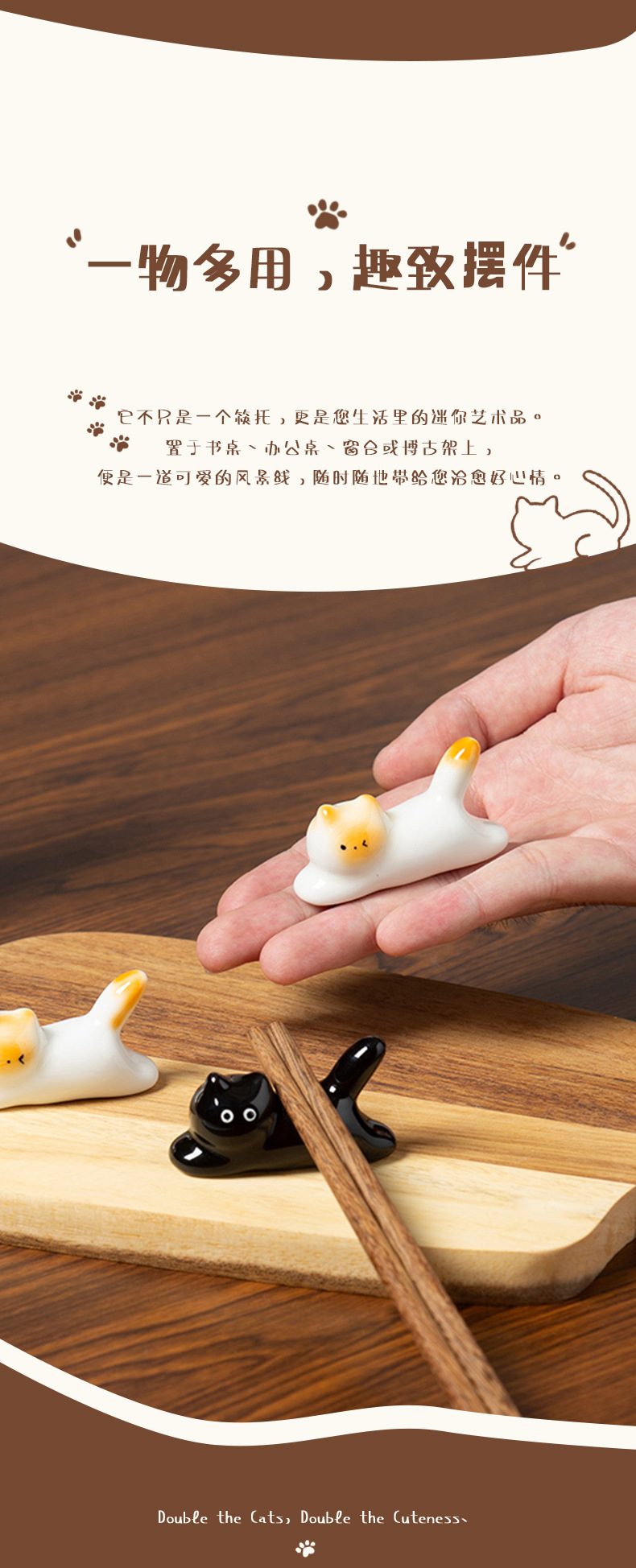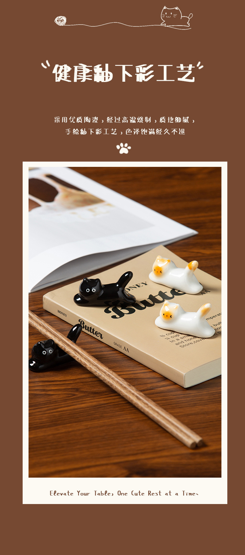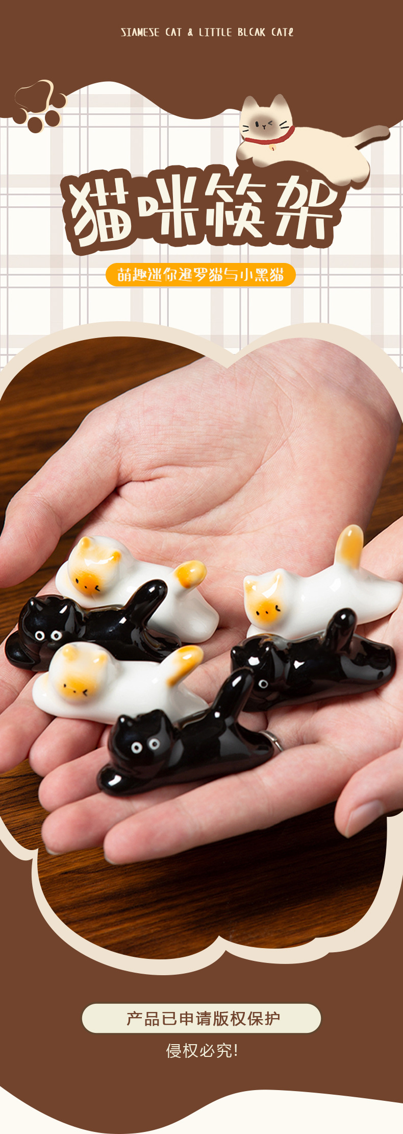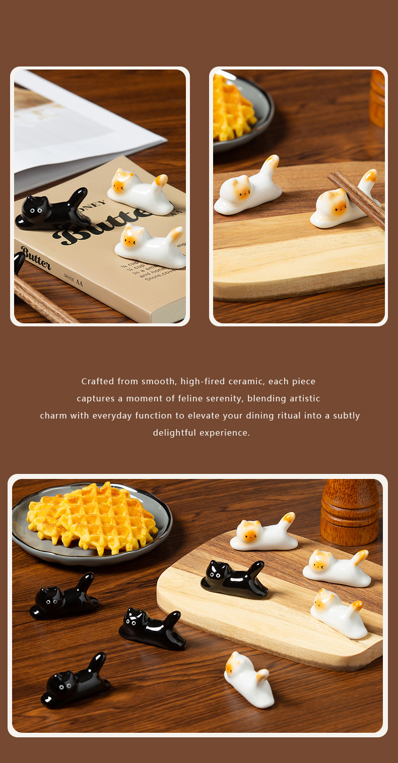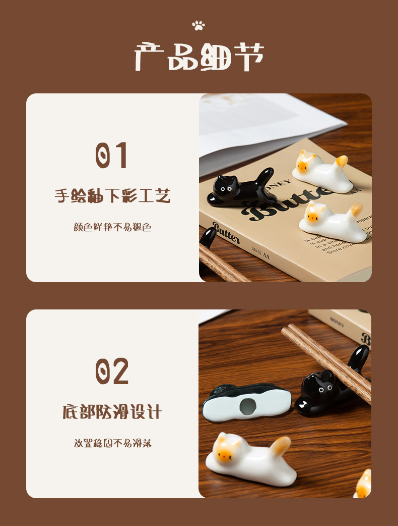 手绘釉下彩可爱猫咪造型陶瓷筷架筷托创意萌趣暹罗猫迷你摆件 English | 投诉