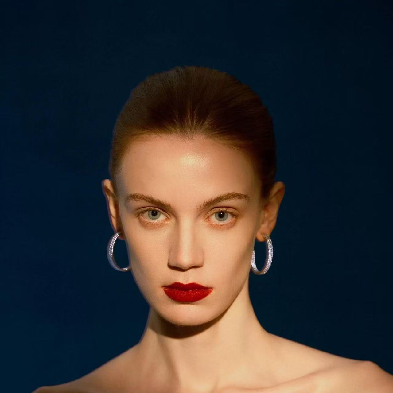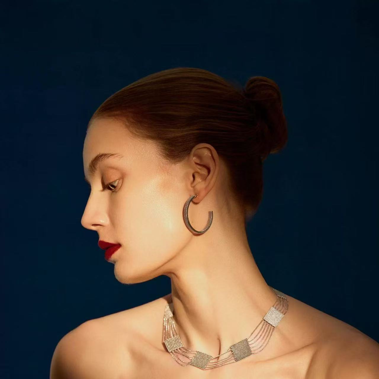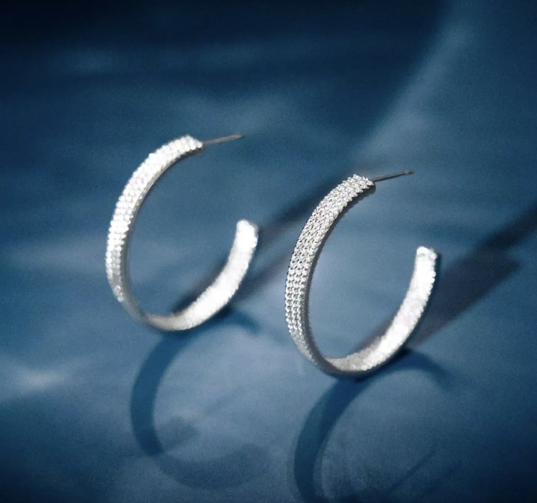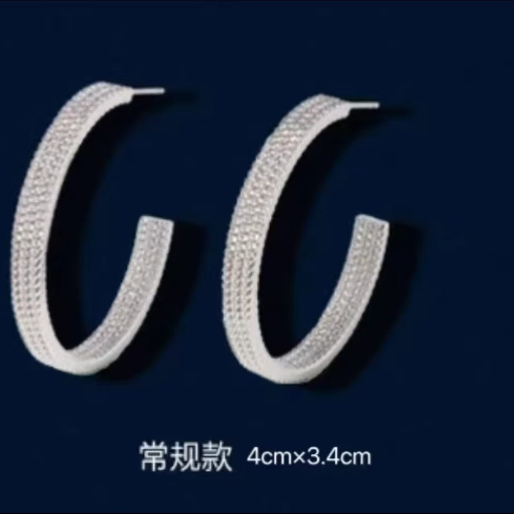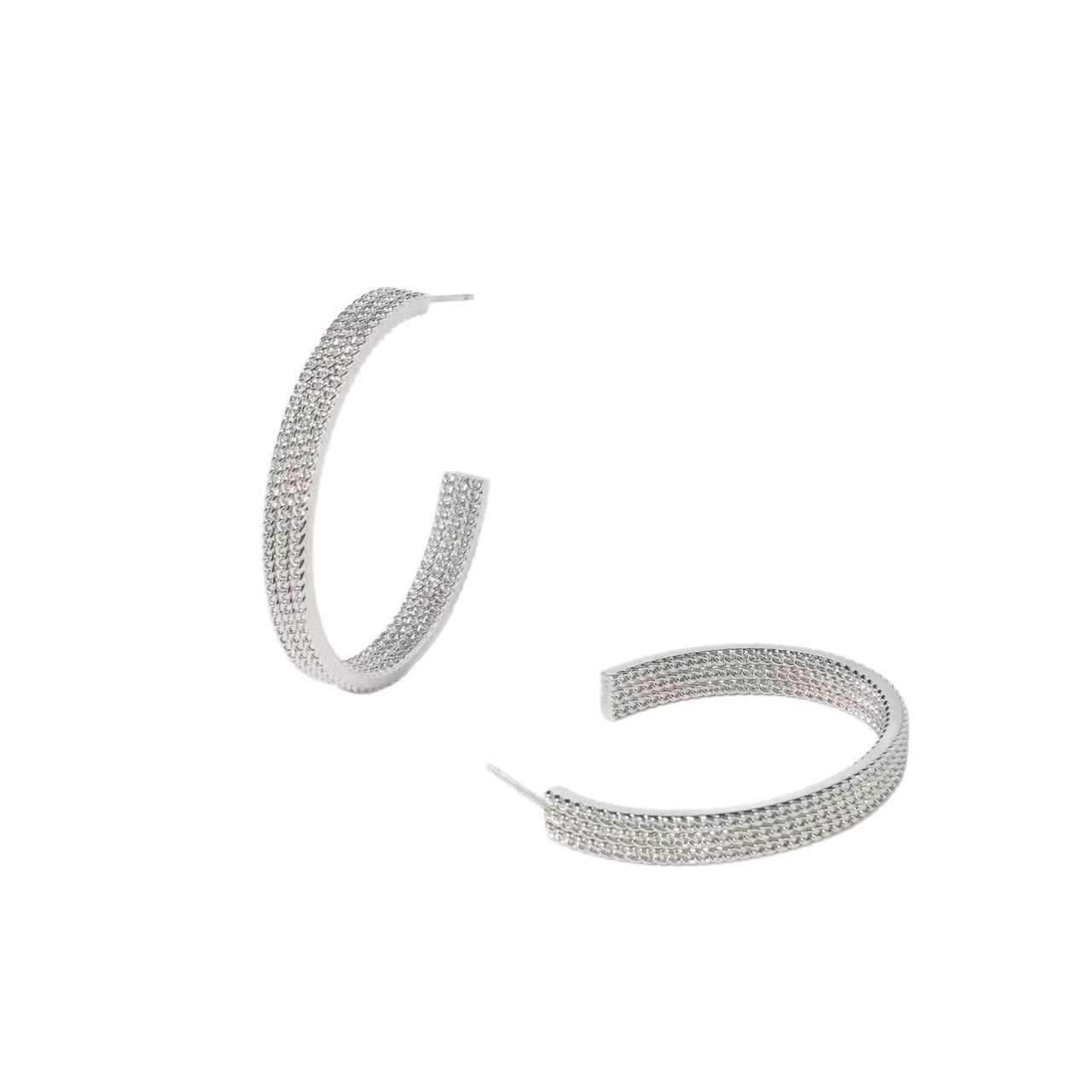 新款小众高级感链条圈圈耳环女银色耳圈闪耀C型简约气质百搭耳饰