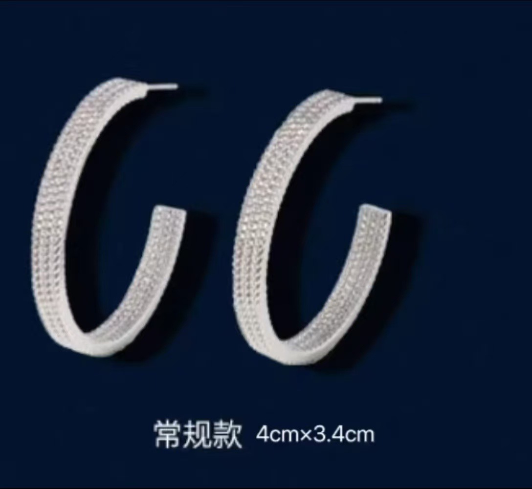 新款小众高级感链条圈圈耳环女银色耳圈闪耀C型简约气质百搭耳饰 投诉