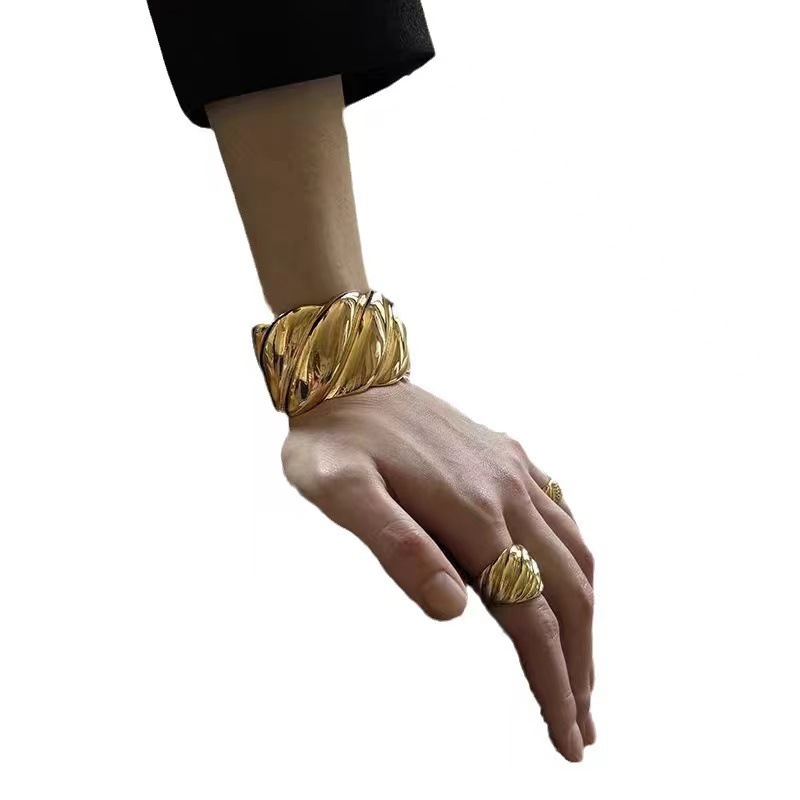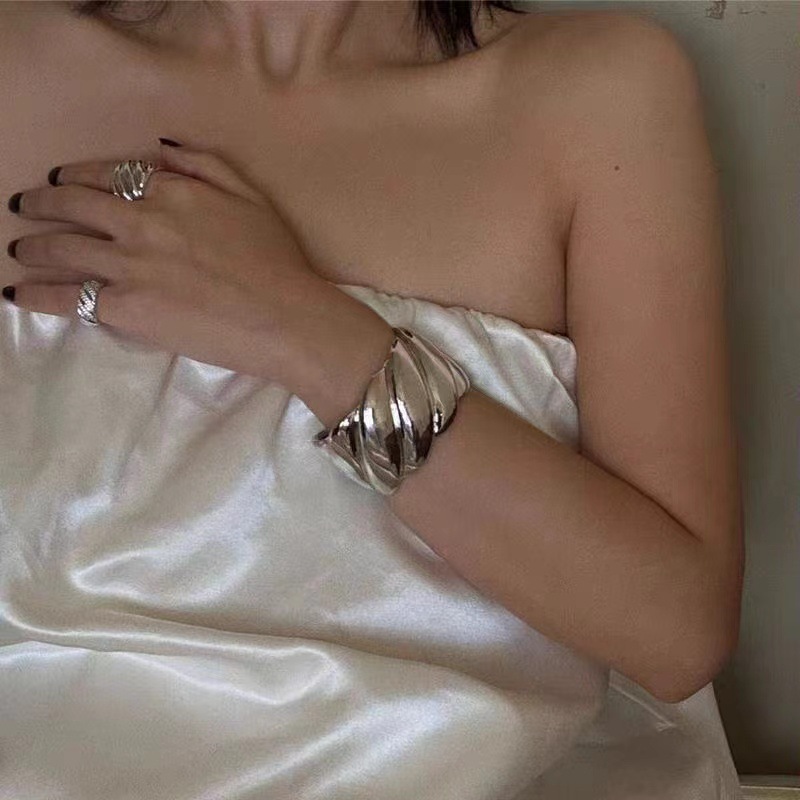新款螺纹经典宽版手镯女开口腕饰小众设计原创轻奢高级重工手镯