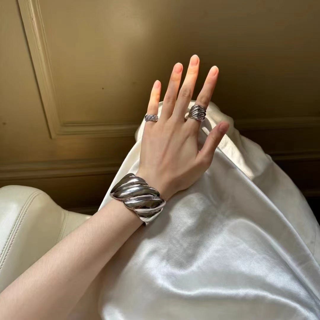 新款螺纹经典宽版手镯女开口腕饰小众设计原创轻奢高级重工手镯 投诉