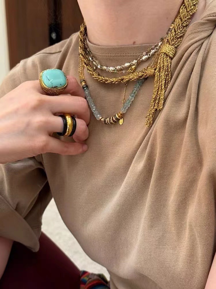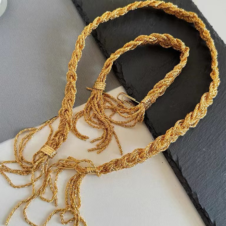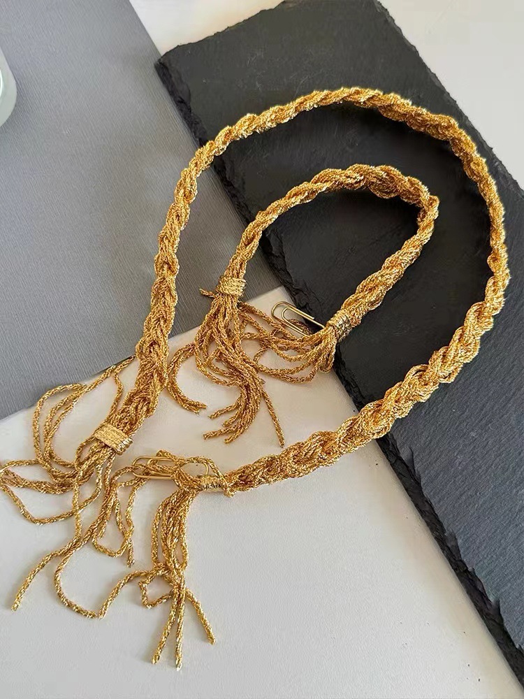 法国小众设计编织麻花流苏项链女手链高级感中古风金色锁骨链手环