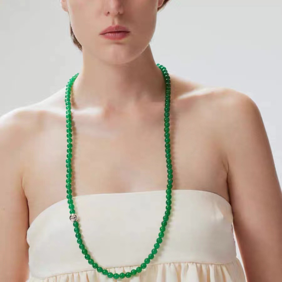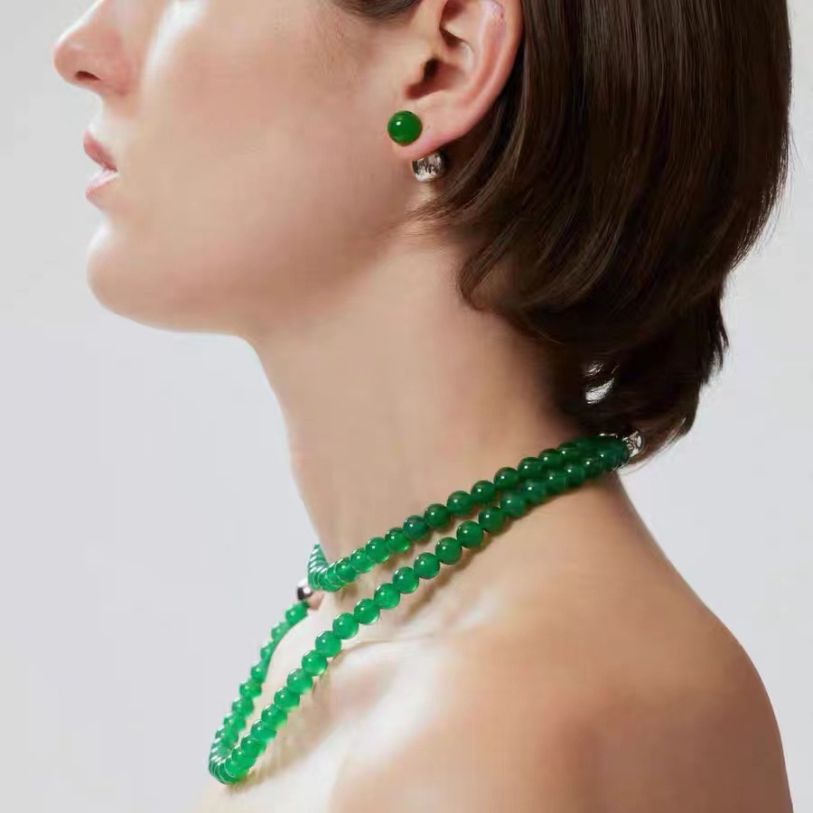 绿玉髓项链凹陷球玉石质感手工串珠锁骨链高级感项饰新中式国风 投诉