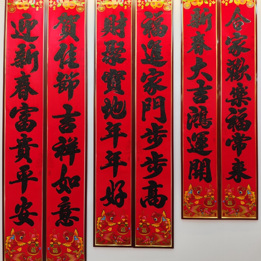 默认金字黑字对联尺寸: 1.1米:实长 90*15cm 1.3米:实长 110*18cm 1.6米:实长 136*19cm 2.2米:实长 160*24cm 3米: 实长 180*26cm 4米:实长 199cm*28cm 5米; 实长 214*30cm 6米:实长 229*31cm 8米:实长 250*34cm