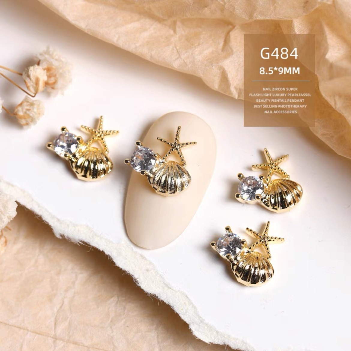 日系新款美甲海星贝壳饰品 金属珍珠沙滩风海洋派大星指甲DIY装饰 English | 投诉