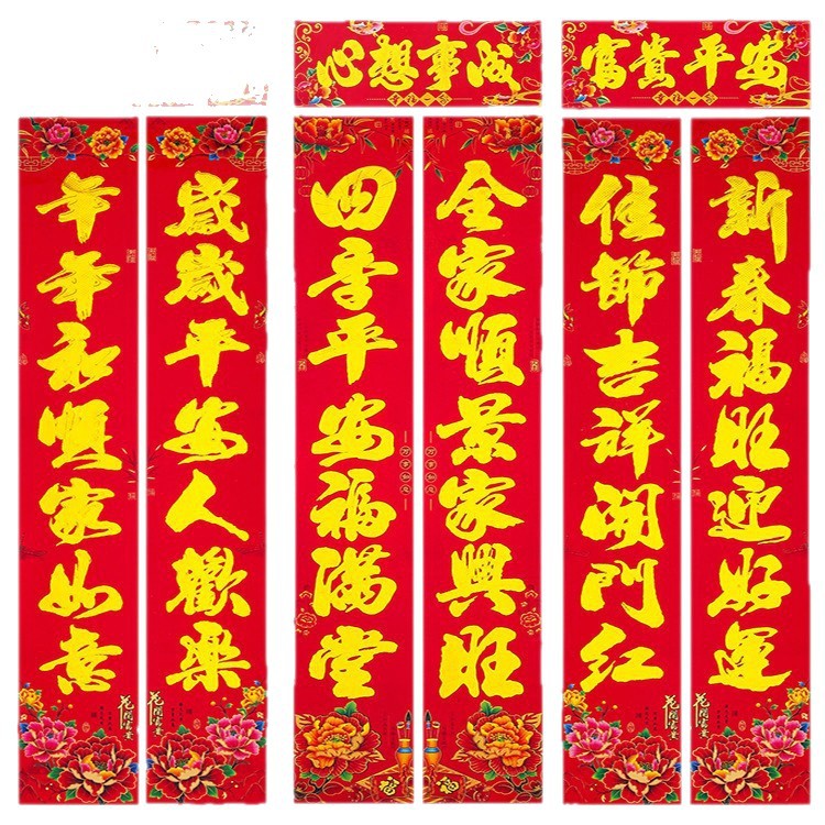 杨俊对联 金童对联 生意对联 生肖对联 植绒对联尺寸: 1.1米:实长 90*16.5cm 1.3米:实长 110*19cm 1.6米:实长 139*22cm 2.2米:实长 180*27cm 3米: 实长 200*30cm 4米:实长 220cm*34cm