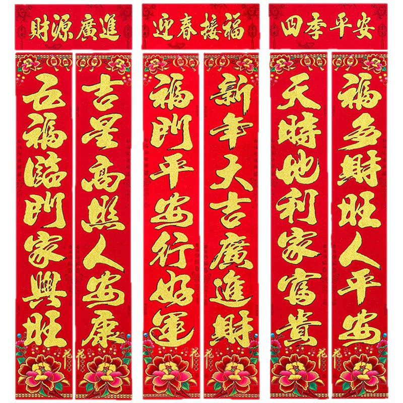 杨俊对联 金童对联 生意对联 生肖对联 植绒对联尺寸: 1.1米:实长 90*16.5cm 1.3米:实长 110*19cm 1.6米:实长 139*22cm 2.2米:实长 180*27cm 3米: 实长 200*30cm 4米:实长 220cm*34cm