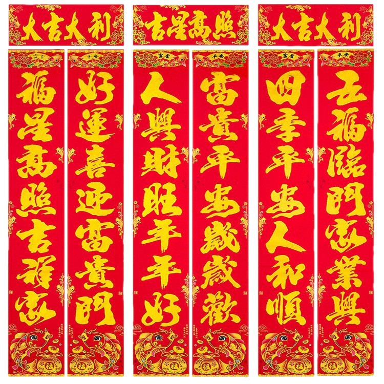 杨俊对联 金童对联 生意对联 生肖对联 植绒对联尺寸: 1.1米:实长 90*16.5cm 1.3米:实长 110*19cm 1.6米:实长 139*22cm 2.2米:实长 180*27cm 3米: 实长 200*30cm 4米:实长 220cm*34cm