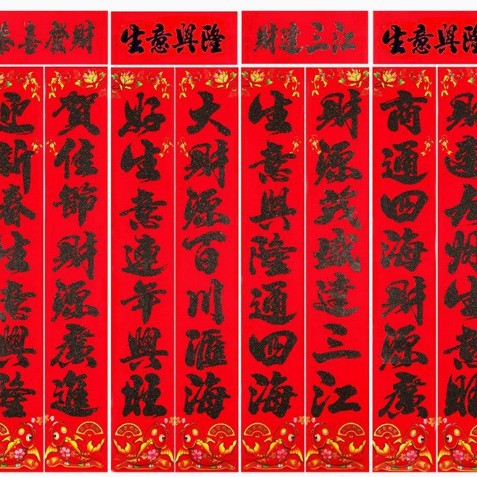 杨俊对联 金童对联 生意对联 生肖对联 植绒对联尺寸: 1.1米:实长 90*16.5cm 1.3米:实长 110*19cm 1.6米:实长 139*22cm 2.2米:实长 180*27cm 3米: 实长 200*30cm 4米:实长 220cm*34cm