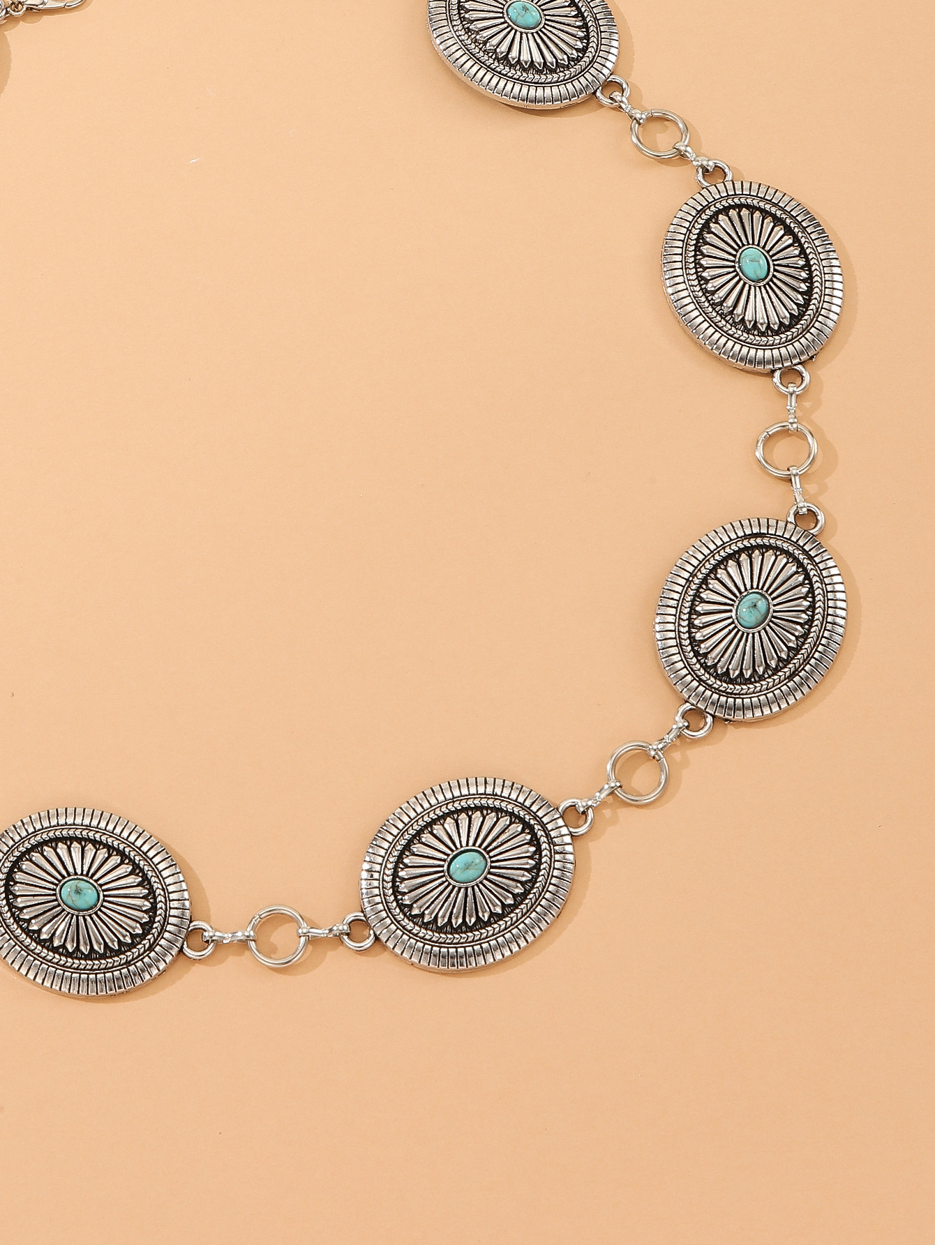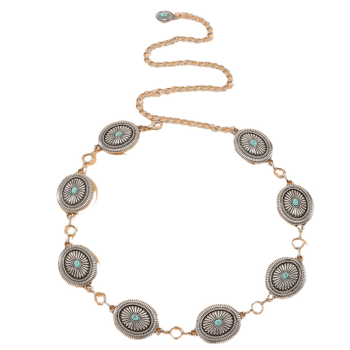 跨境欧美风腰链复古绿松石腰链波西米亚风金属腰链服饰配件身体链 English | 投诉