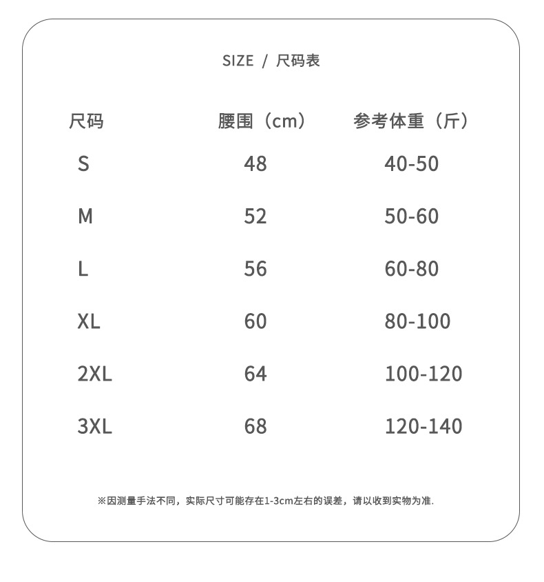 | 3XL码【建议体重120斤-140斤】 | ¥2880 | 5000组可售 |