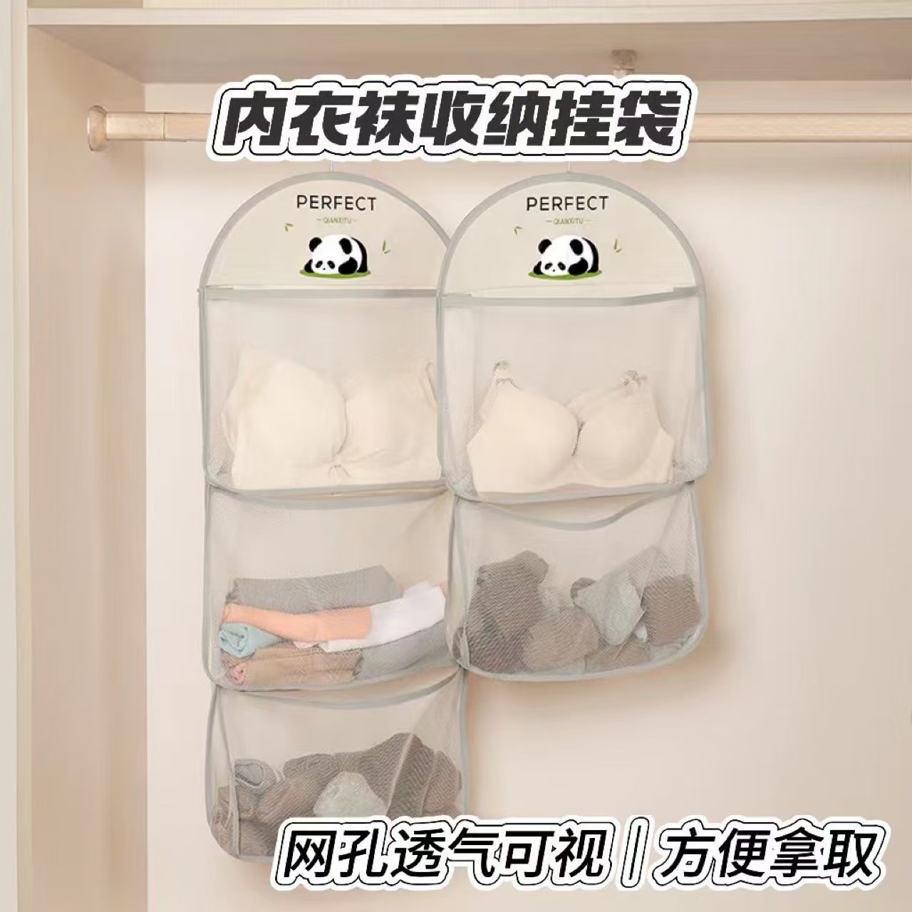 壁挂式内衣内裤网兜挂袋多层衣柜袜子收纳袋家用大容量衣物置物袋 English | 投诉