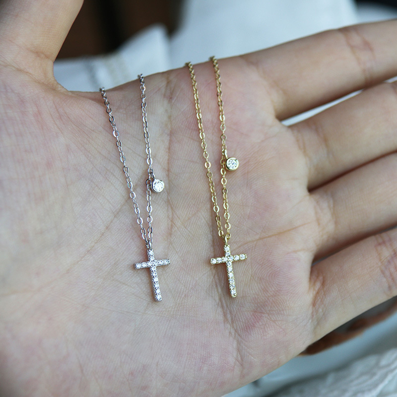 通体S925纯银镶钻十字架项链经典款气质精致轻奢小众高级感锁骨链 English | 投诉
