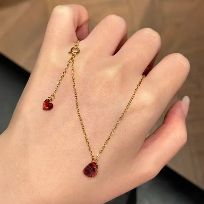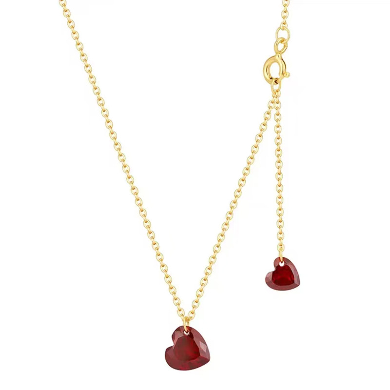 S925纯银镀18K金项链双爱心小众立体酒红桃心高级感吊坠锁骨链女 English | 投诉