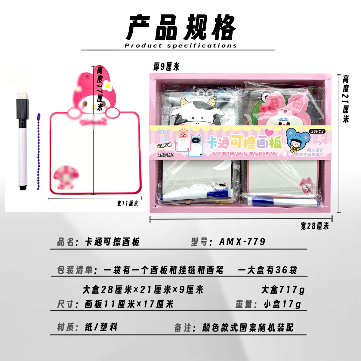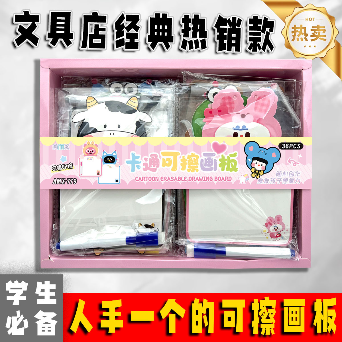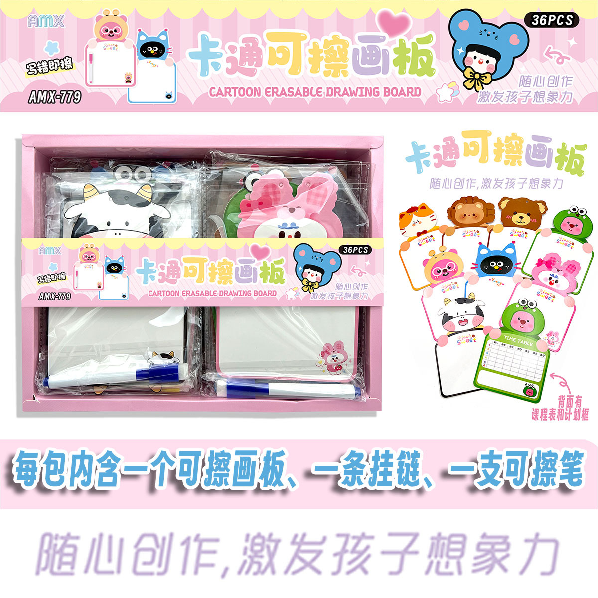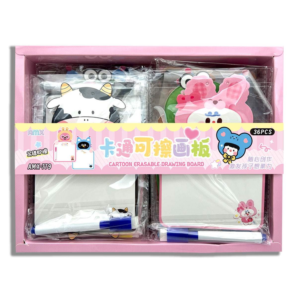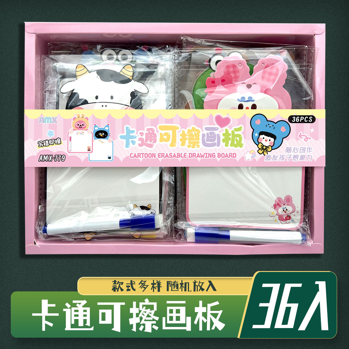 36入卡通可擦画板盒装批发幼儿园小学生全班奖品实用礼物生日赠礼