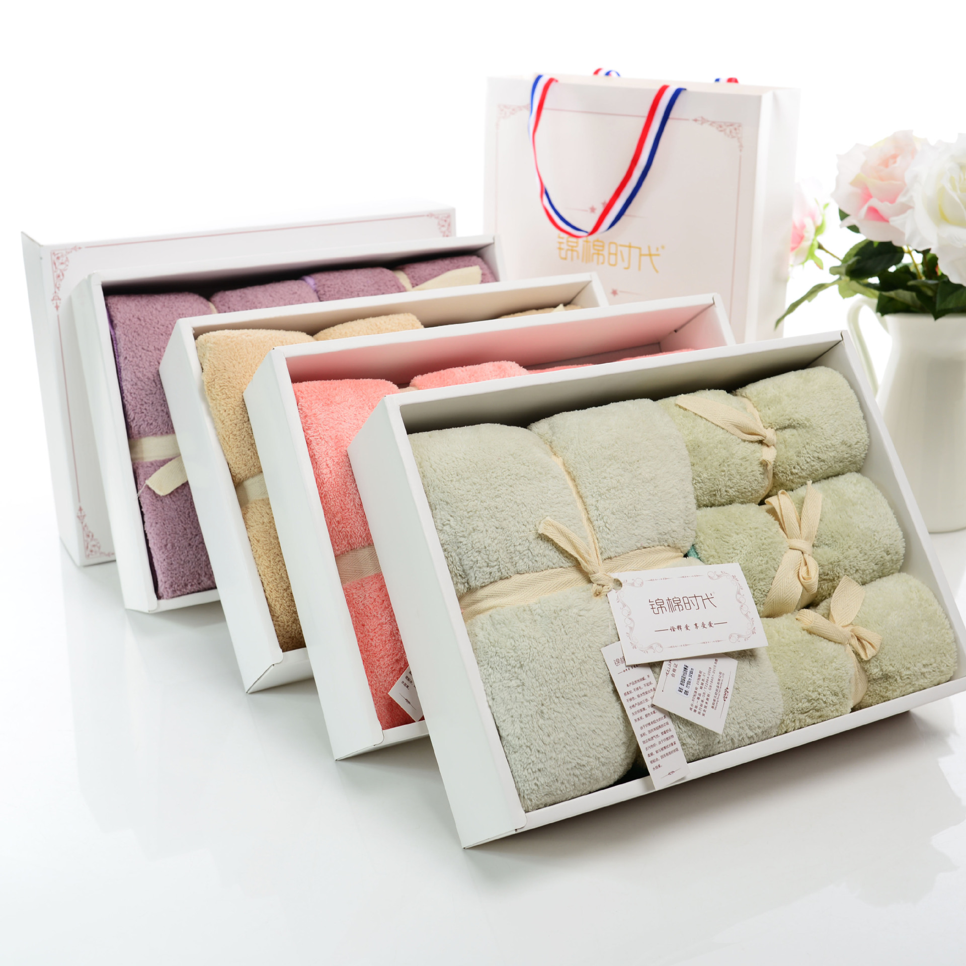 本款礼盒珊瑚绒套件,实为12色,可随意搭配,三条毛巾,一条浴巾组合而成!可用于婚礼回礼,生日店庆,送长辈,送同事!