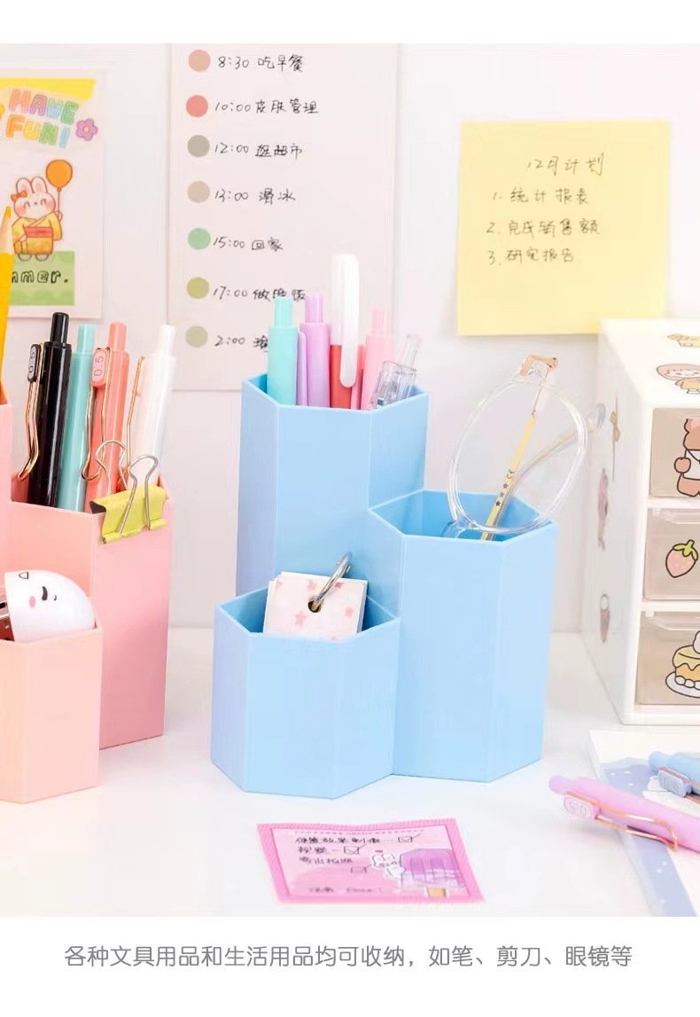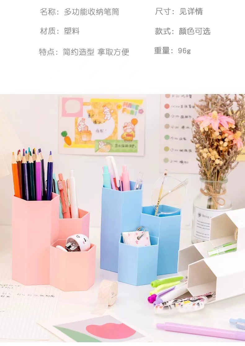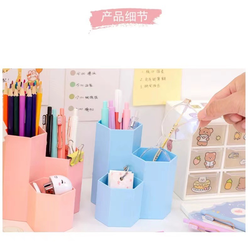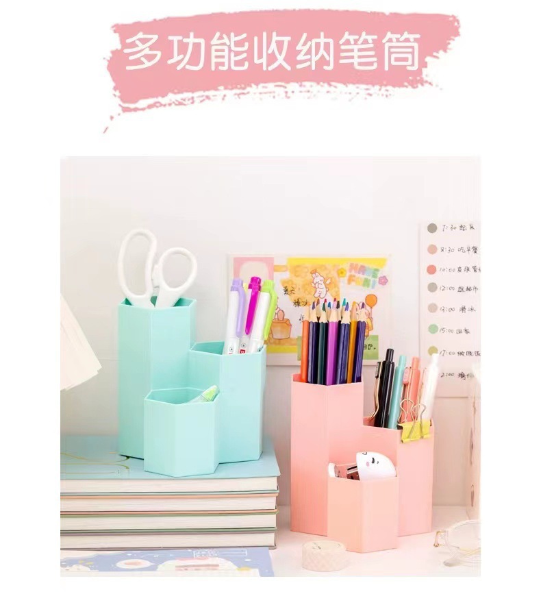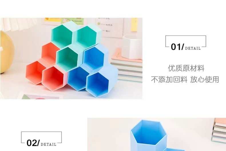 糖果色化妆品眉笔收纳盒办公文具多格笔筒学生桌面六边形笔筒批发 English | 投诉