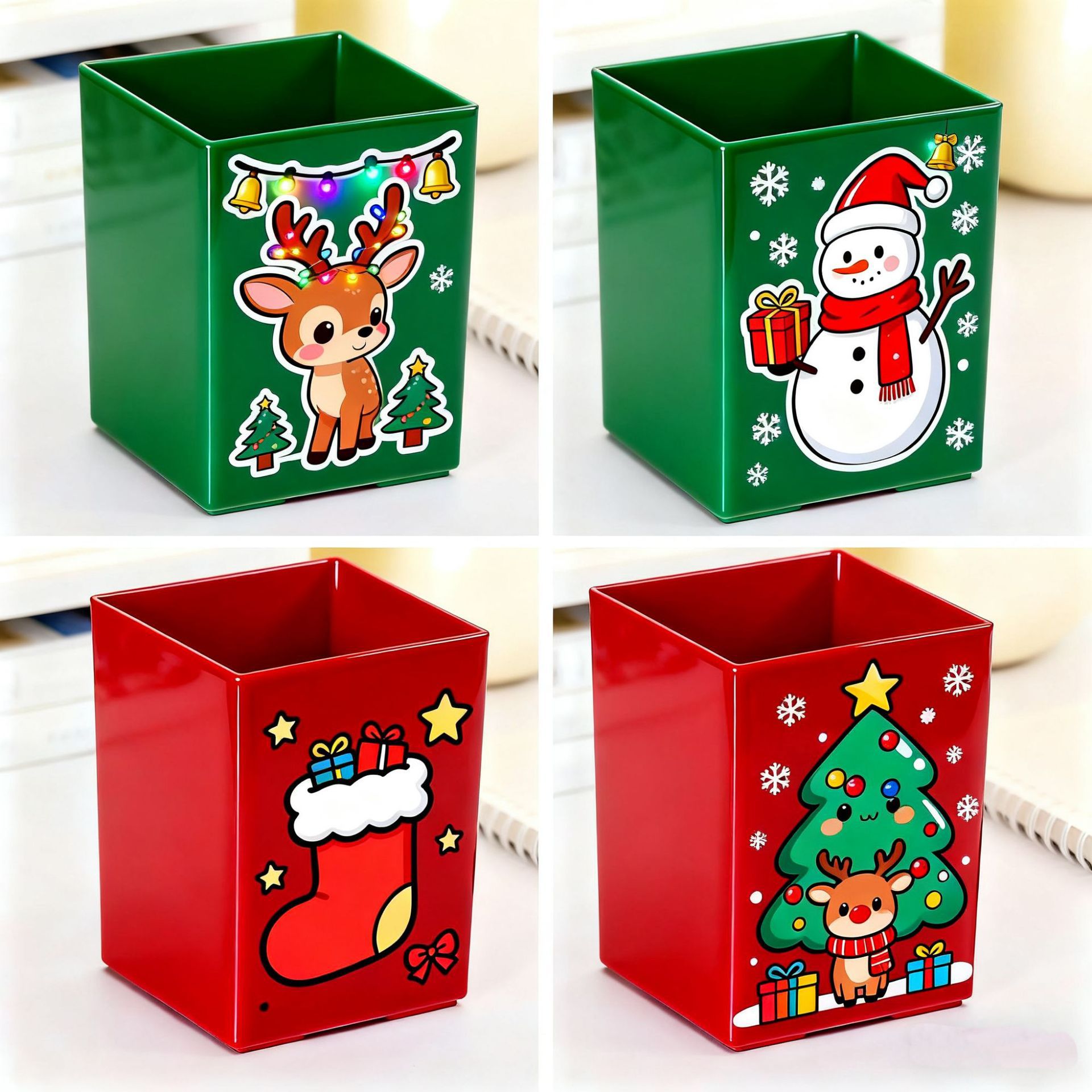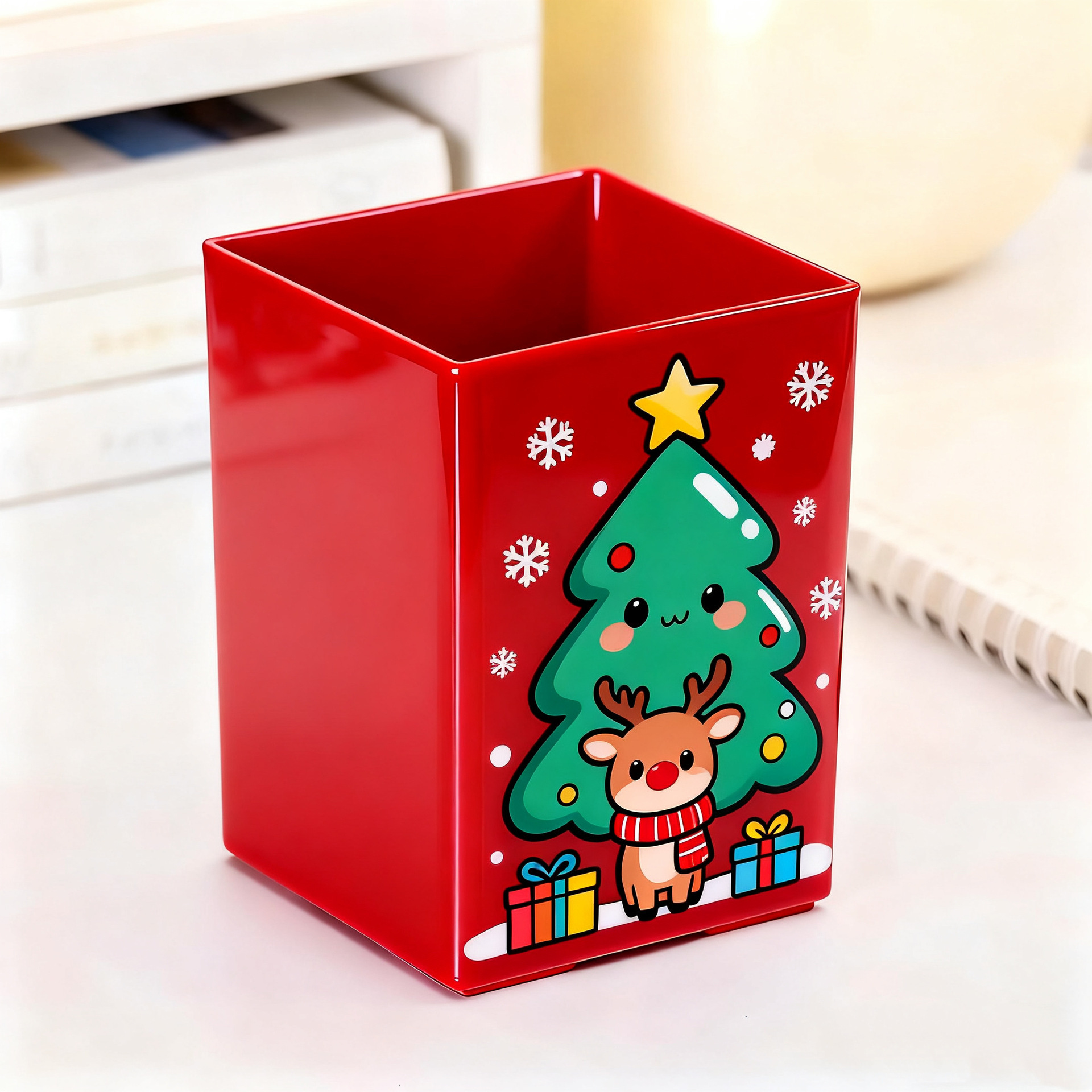 ns新款高颜值圣诞节大容量学生桌面方形笔筒可爱卡通文具收纳笔筒 English | 投诉