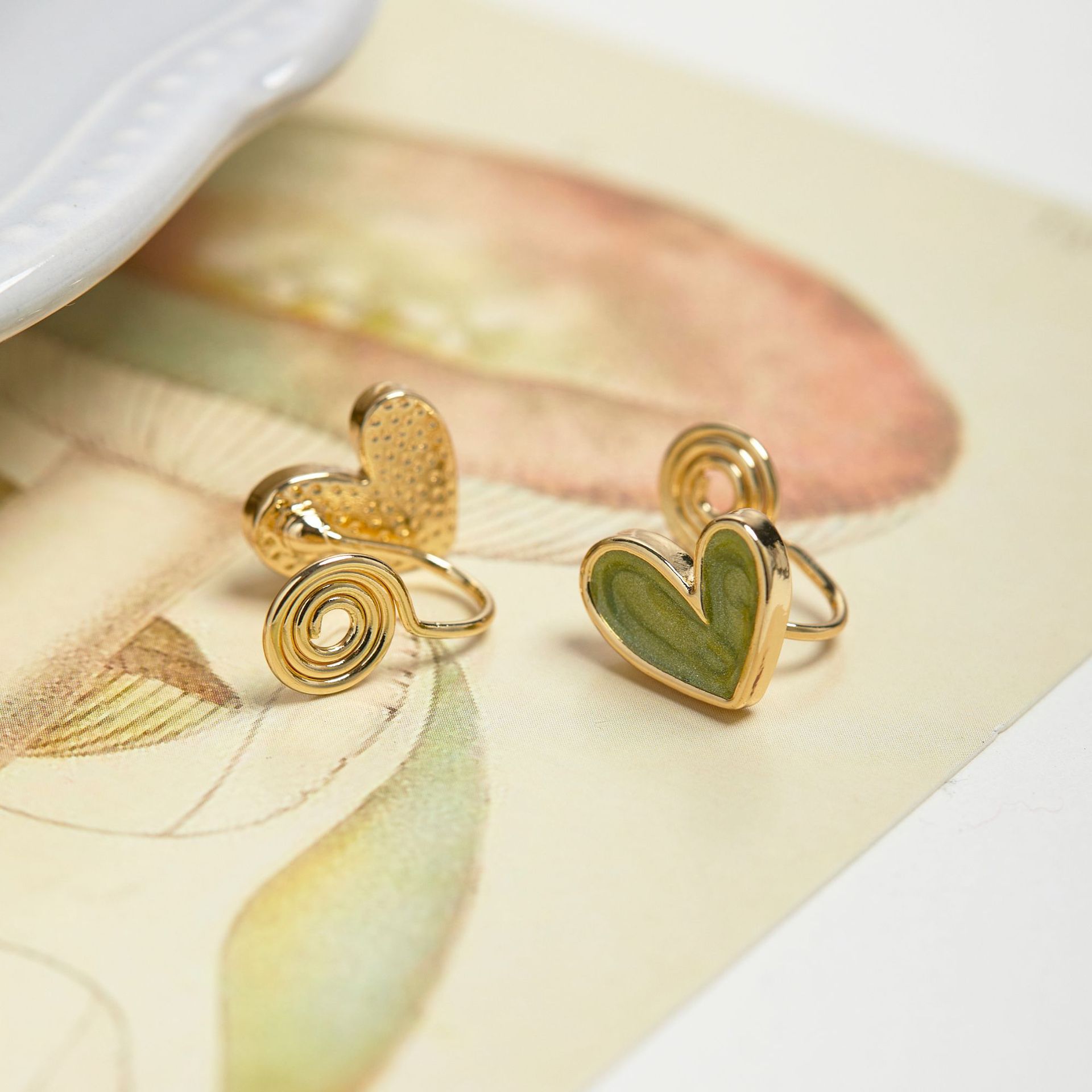 【抹茶爱心】小巧绿色耳钉清新精致油画感春夏耳饰耳夹无耳洞无痛