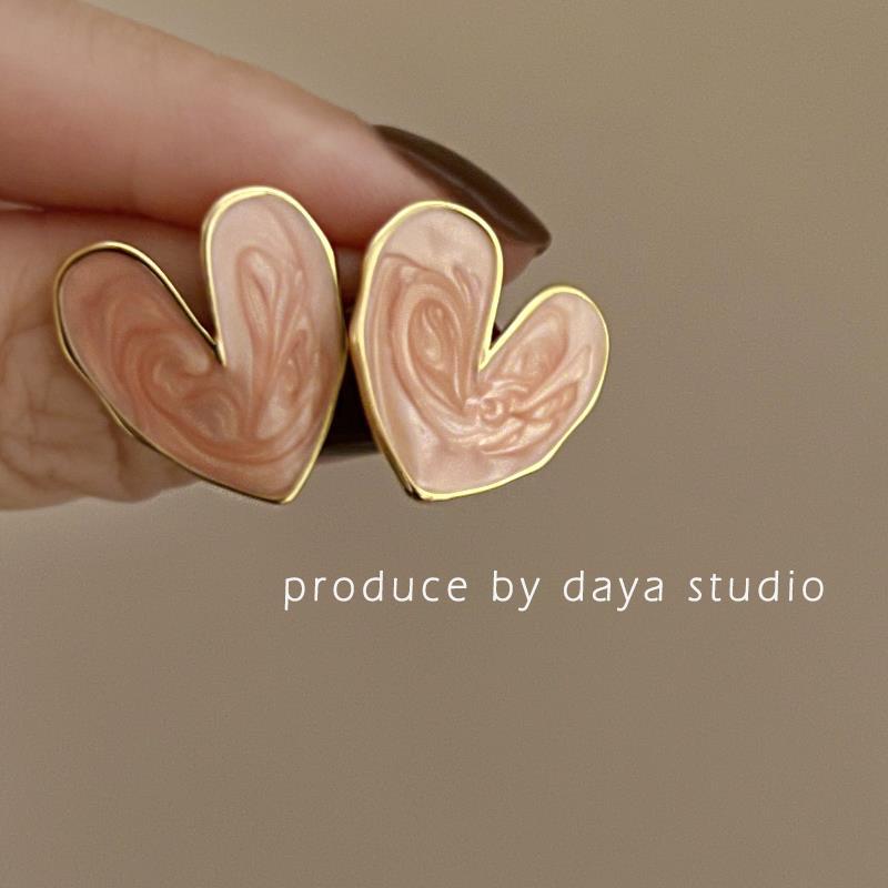 超嗲的雾粉高级感法式爱心滴油耳环精致少女感小众设计蚊香盘耳夹 English | 投诉