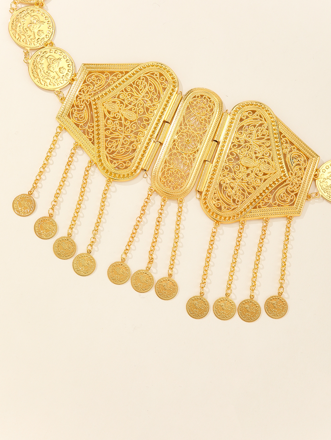 欧美跨境镂空合金流苏腰链时尚钱币简约合金长款身体链肚脐链配饰 English | 投诉