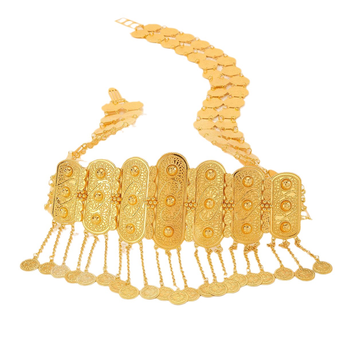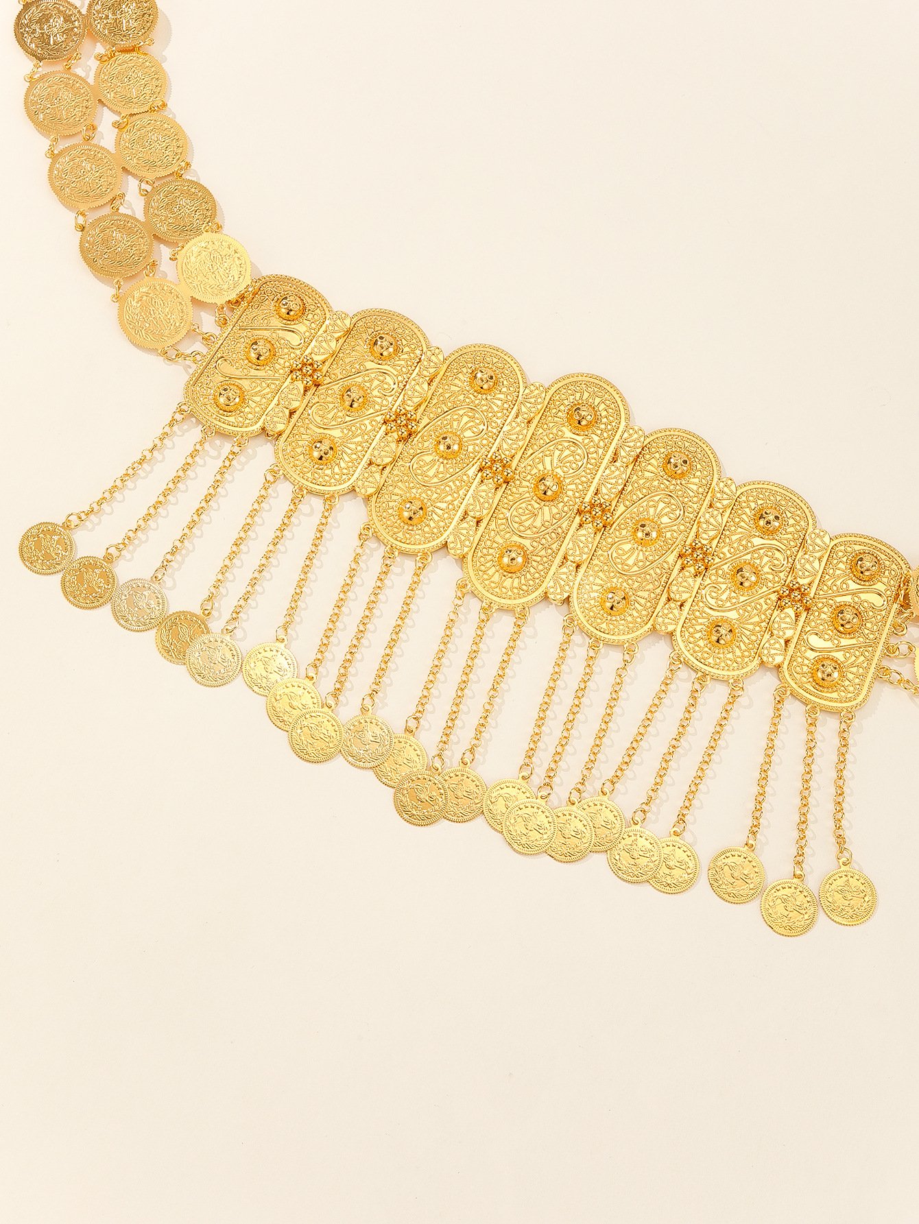 新款复古风腰饰镂空钱币流苏腰链时尚金色腰带肚皮舞金属腰链批发 English | 投诉