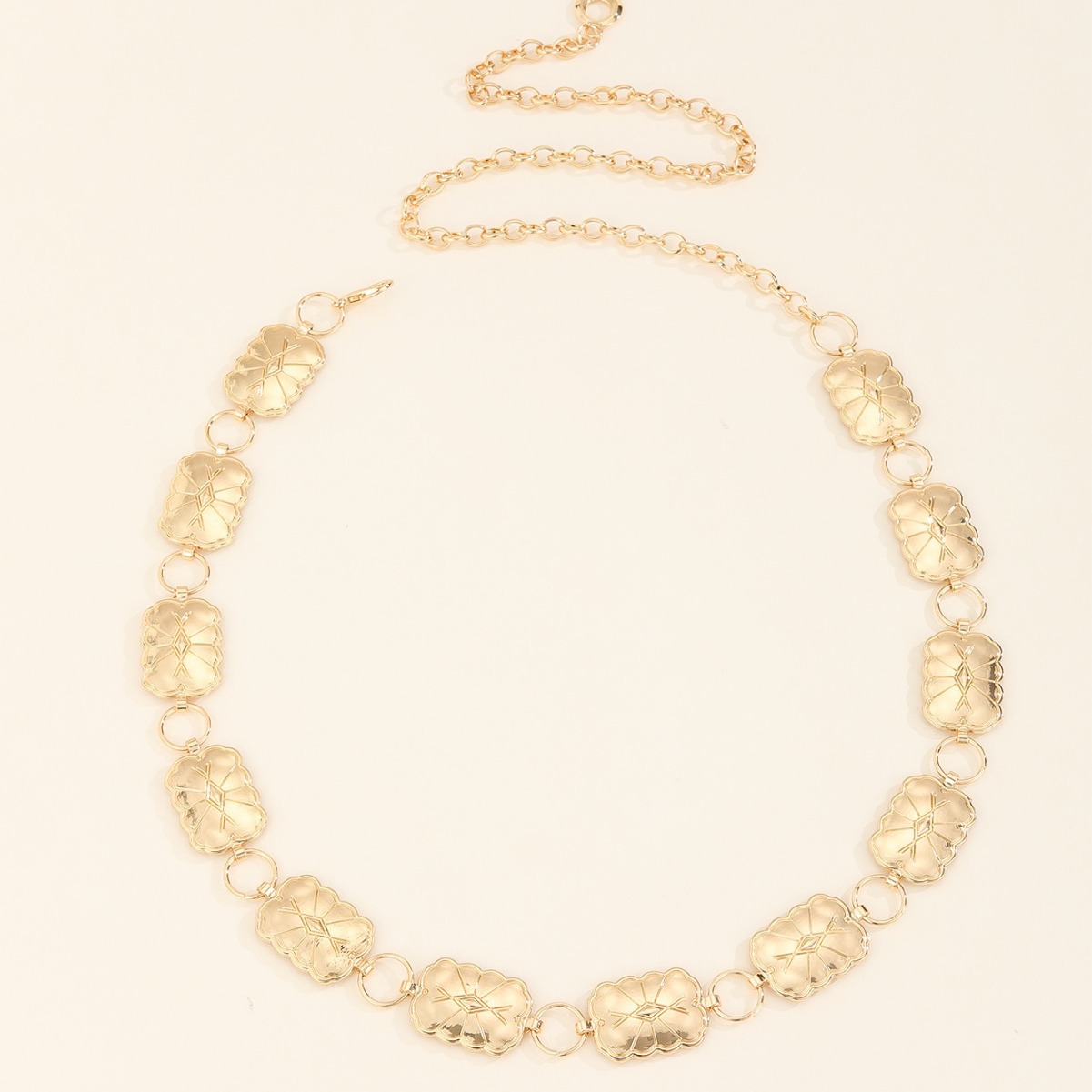 材质: 金属 产品类别: 腰链 腰带圈数: 单圈 长度(CM): 105cm 宽度: 咨询客服 风格: 百搭 货源类别: 现货 适用性别: 中性/男女均可 适用年龄段: 青年 颜色: 金色 包装: 咨询客服 是否外贸: 是 是否库存: 是 品牌: 自主品牌 货号: 0443 适合季节: 夏季,冬季,春季,秋季 加工定制: 是 带扣元素: 复古 上市年份/季节: 2023年夏季 主要下游平台: 咨询客服 重量: 0.25 kg/条