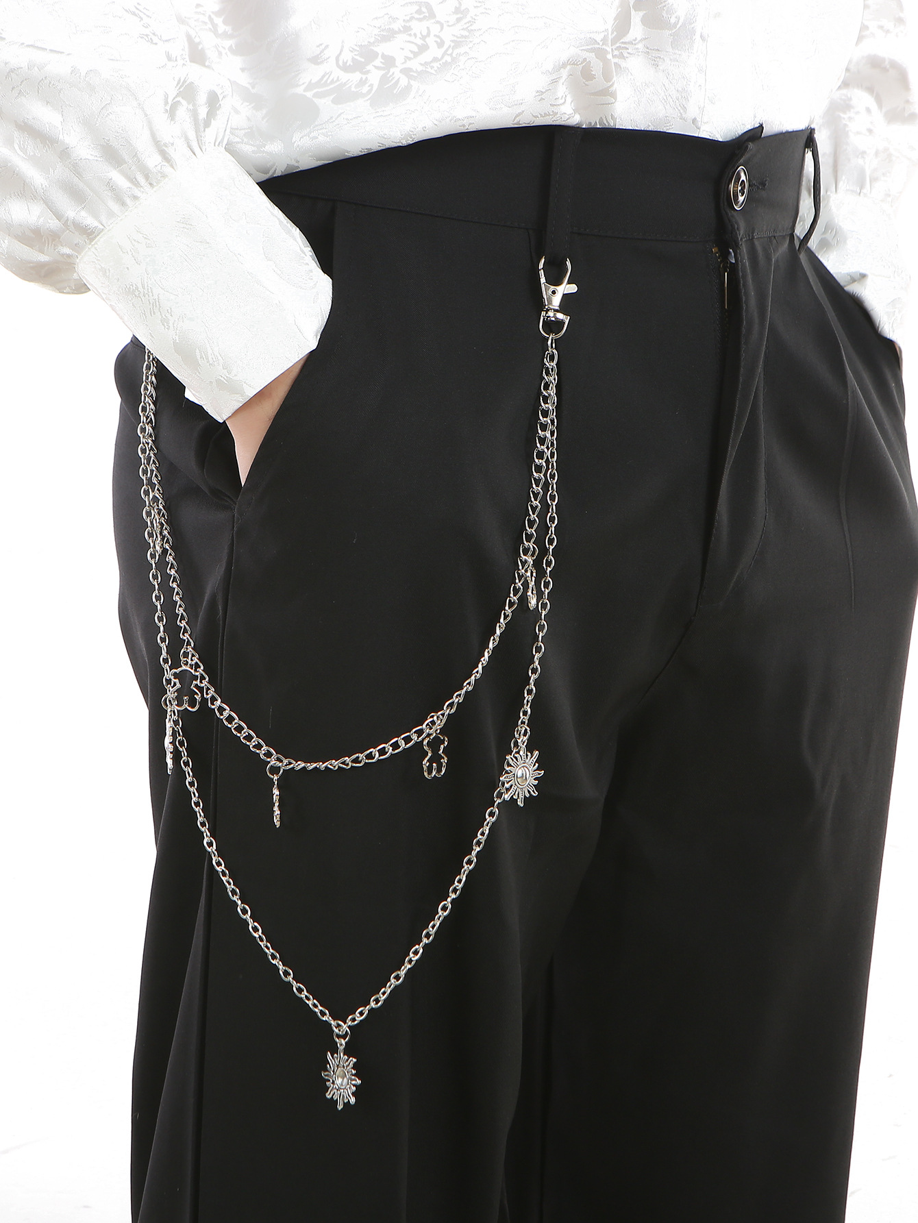 欧美跨境饰品性感裤链金属链条 小熊太阳 身体链多层腰链收腰腰带 English | 投诉