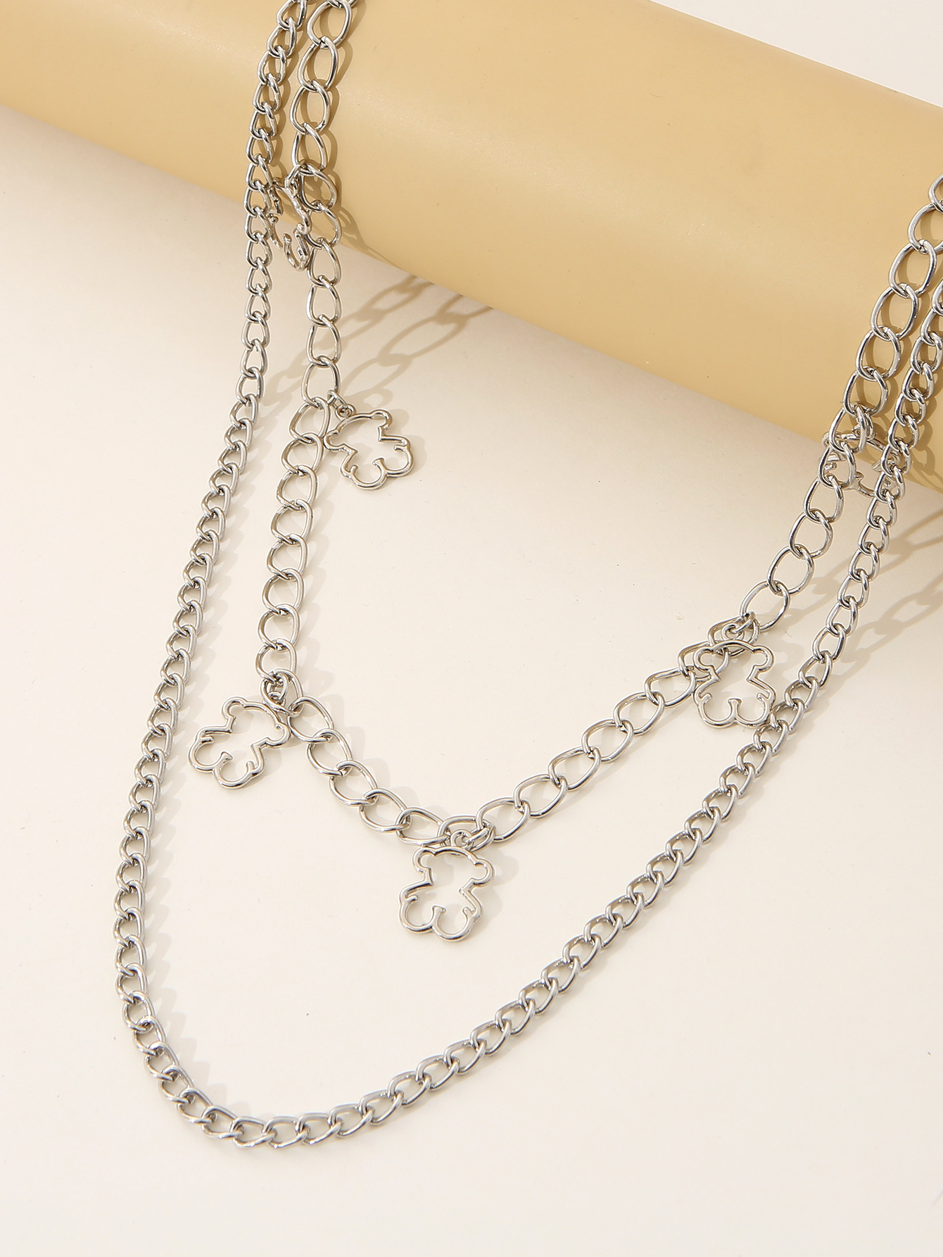 欧美跨境新品金属链条时尚双层腰封可爱小熊腰链女牛仔裤装饰配件