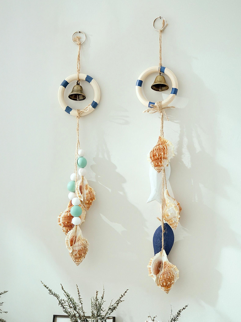 地中海风格墙面装饰救生圈贝壳挂件实木麻绳风铃创意北欧墙壁家居 English | 投诉
