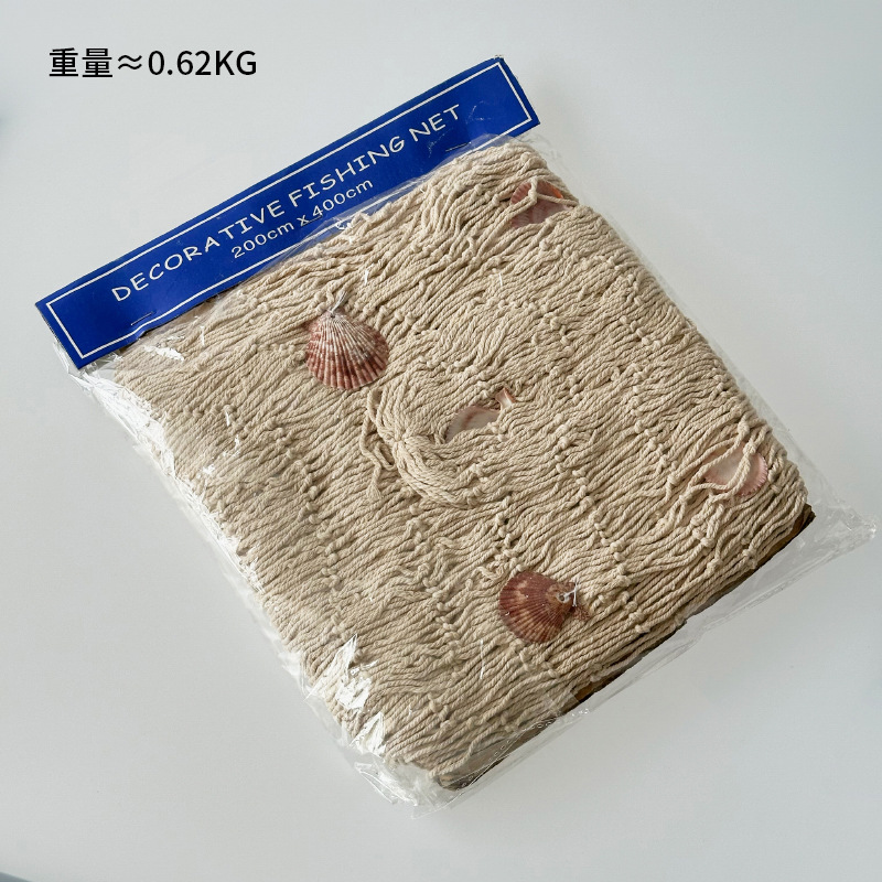 地中海装饰渔网粗线麻绳贝壳网摄影道具幼儿园背景墙装饰挂饰 English | 投诉