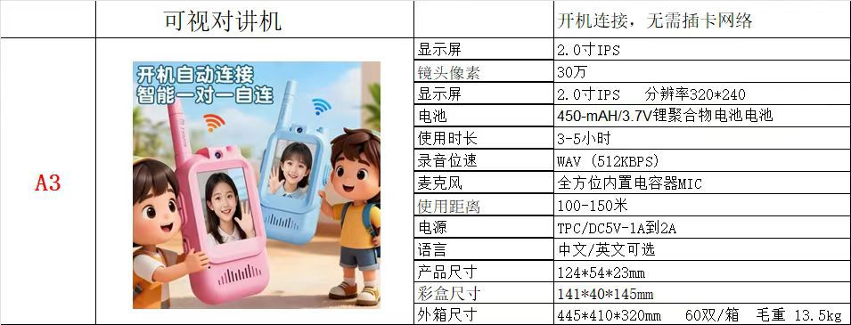 可视儿童视频对讲机2寸高清无线可视对讲机益智玩具生日礼物 English | 投诉