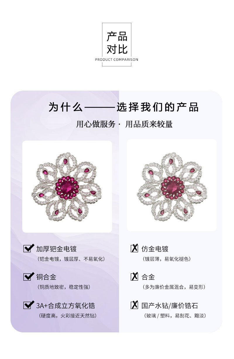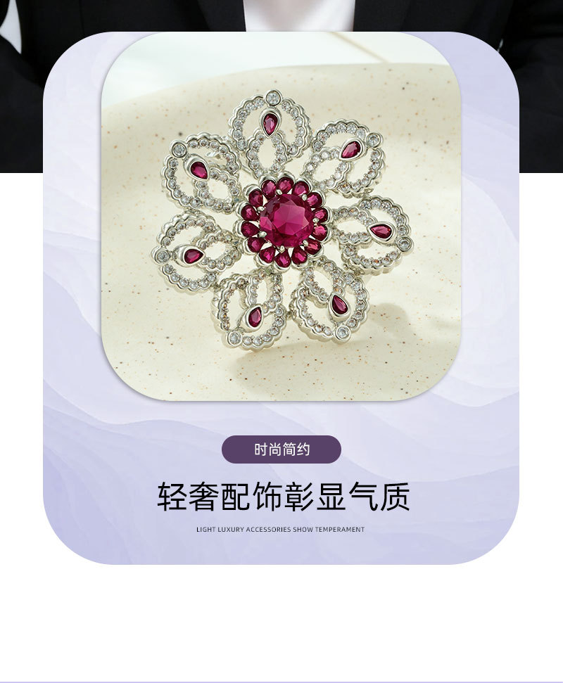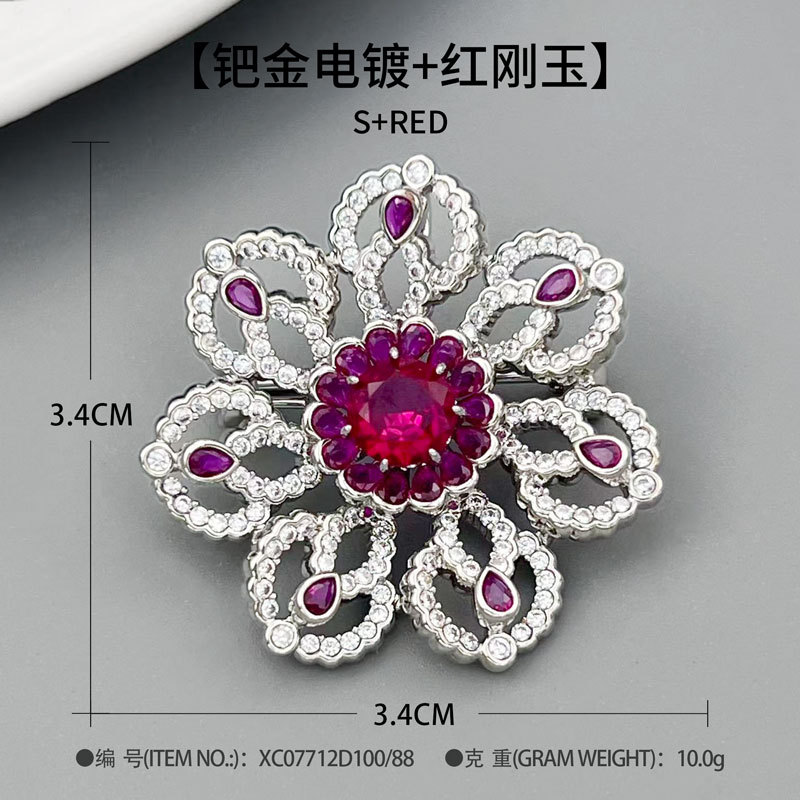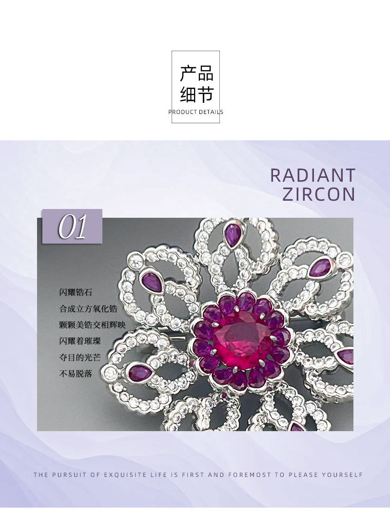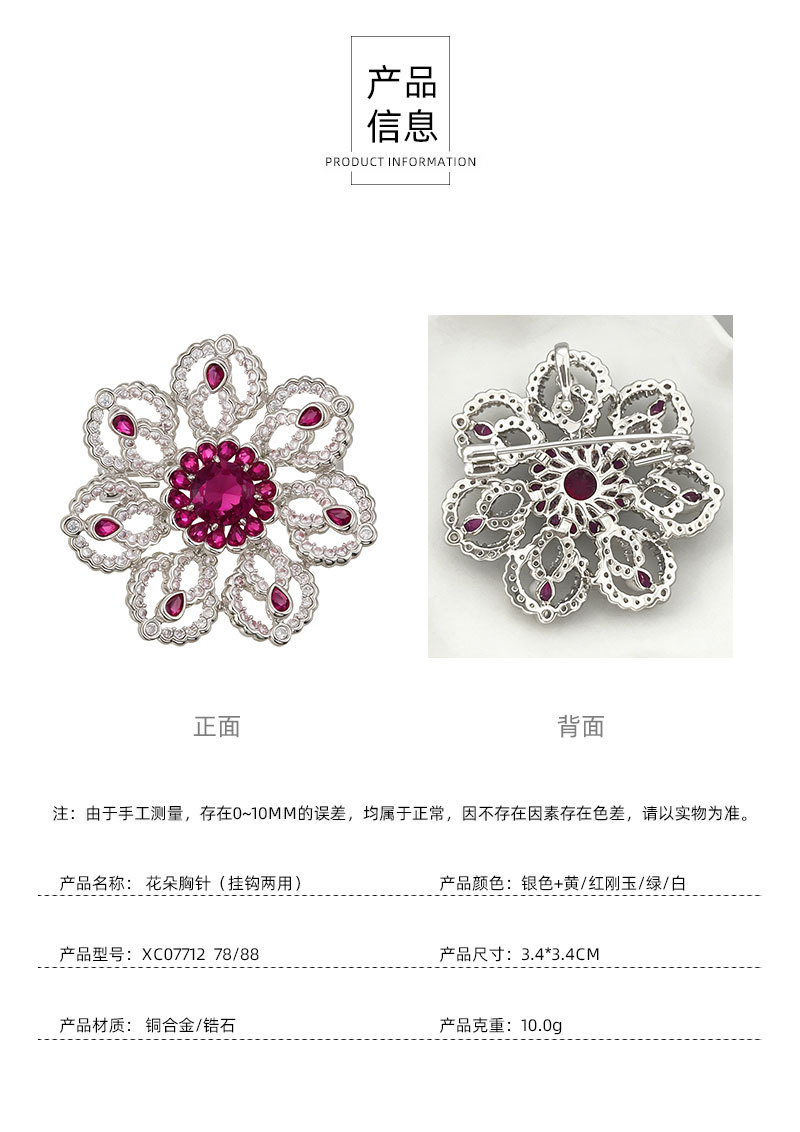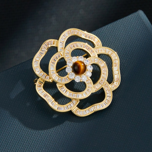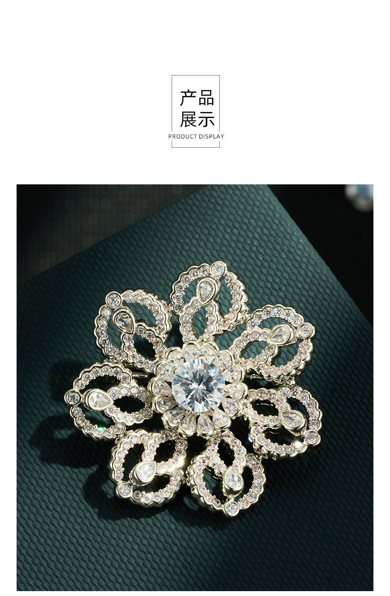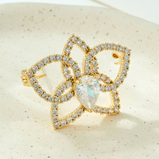 花开璀璨高级感轻奢精致胸针铜合金微镶锆石镂空花朵别针原创胸花 投诉