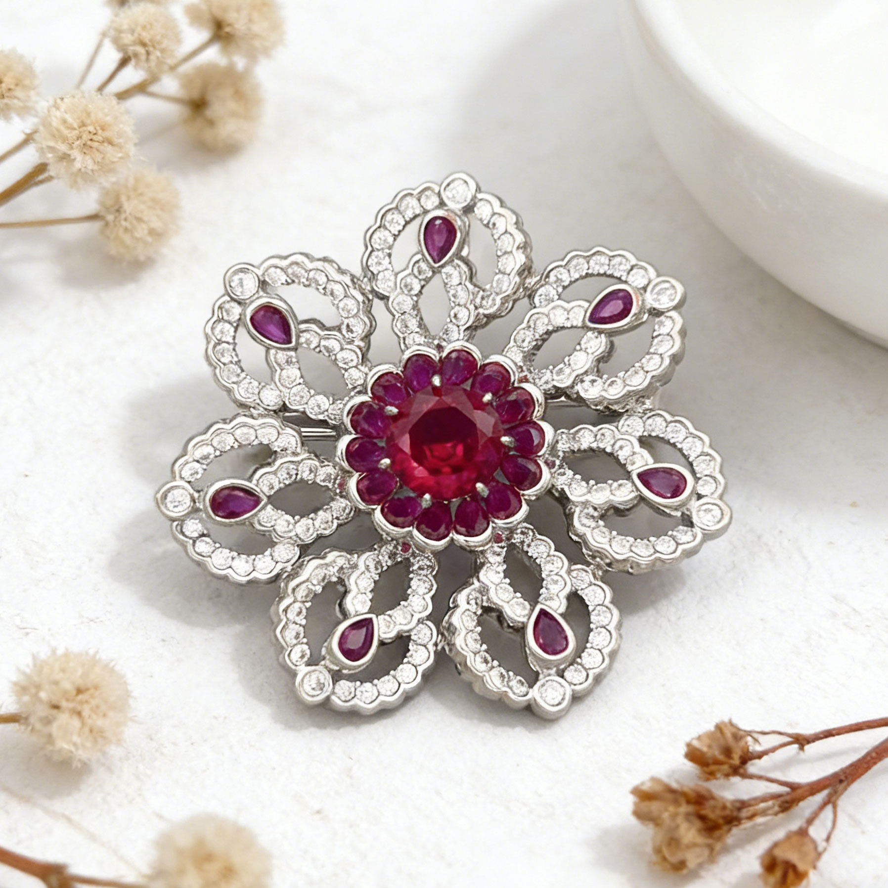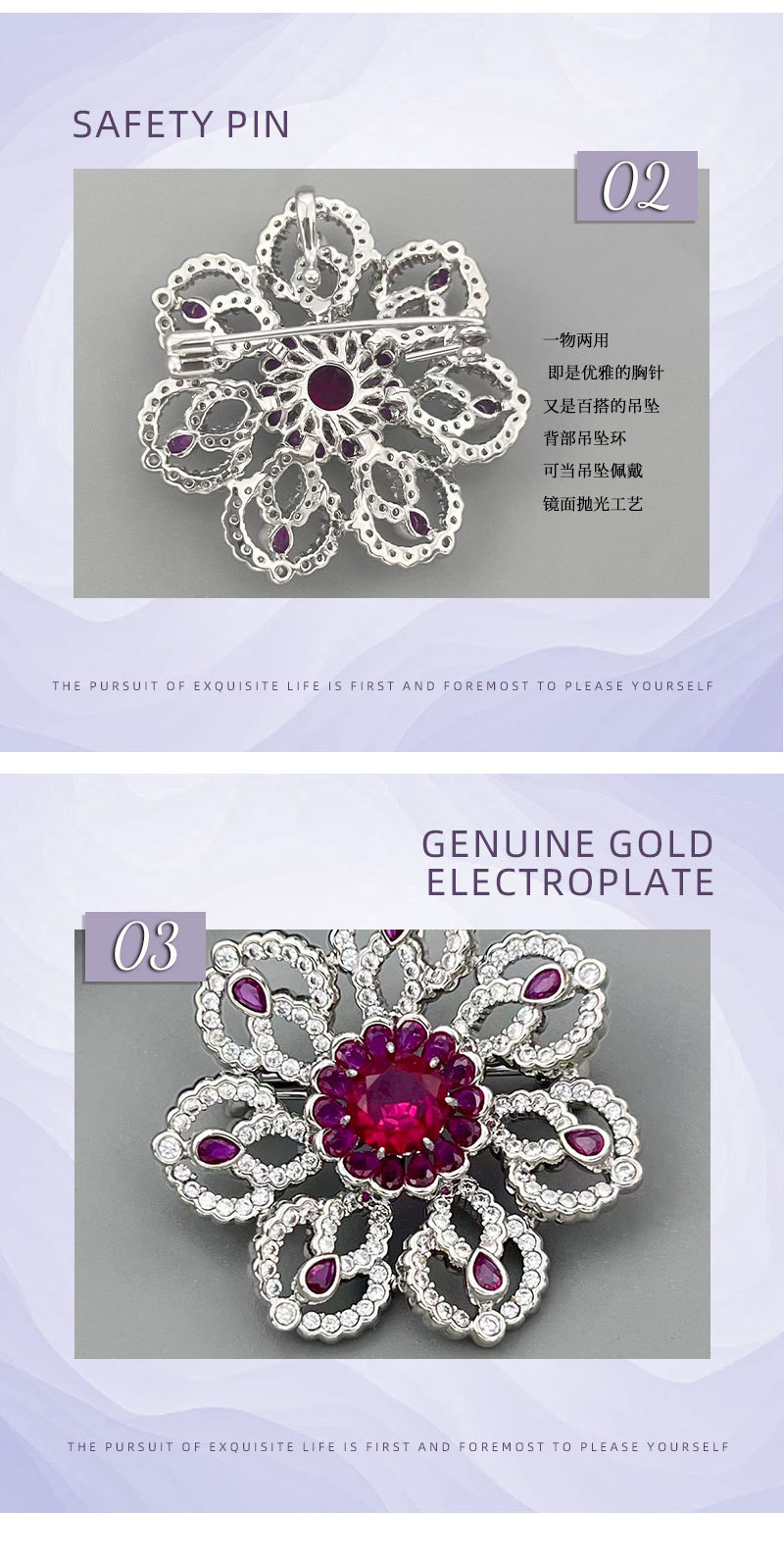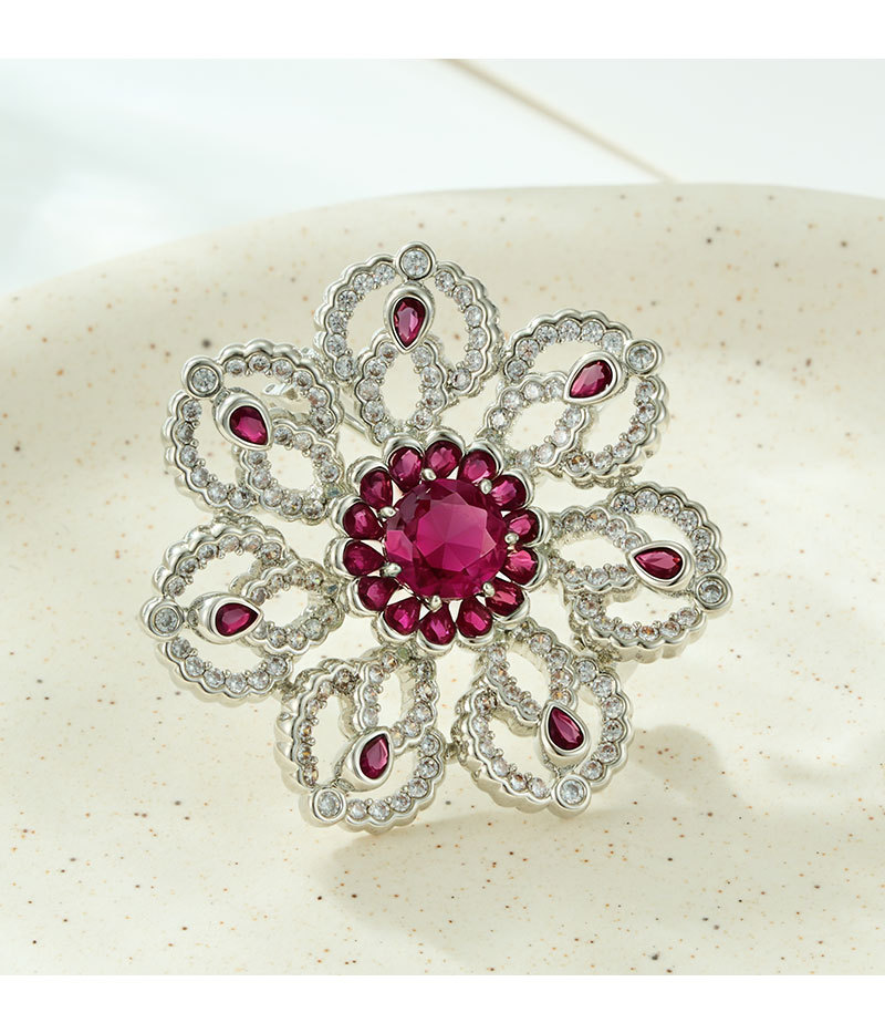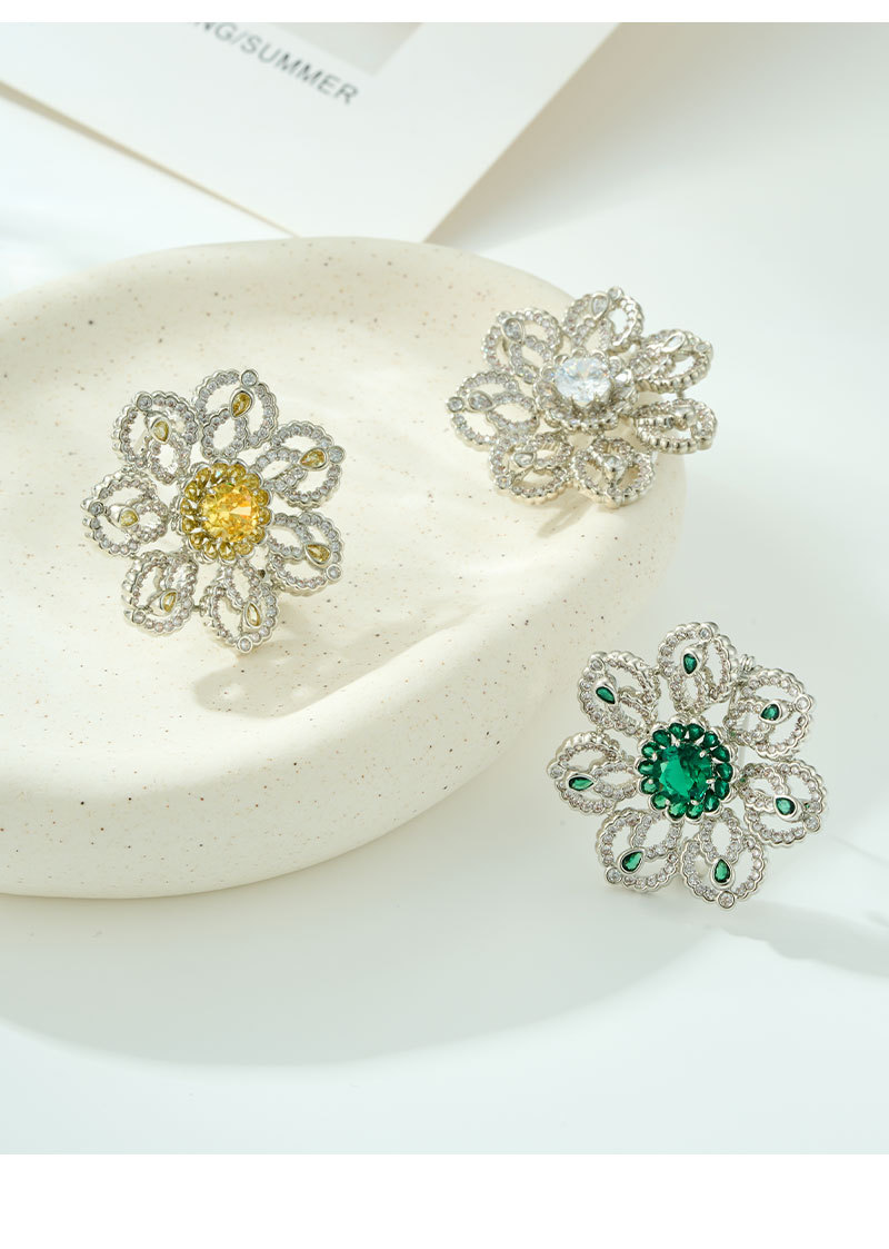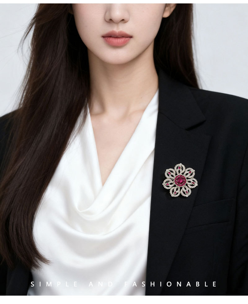 花开璀璨高级感轻奢精致胸针铜合金微镶锆石镂空花朵别针原创胸花 投诉