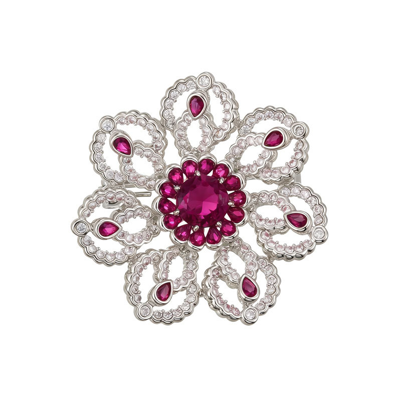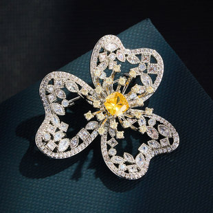 花开璀璨高级感轻奢精致胸针铜合金微镶锆石镂空花朵别针原创胸花