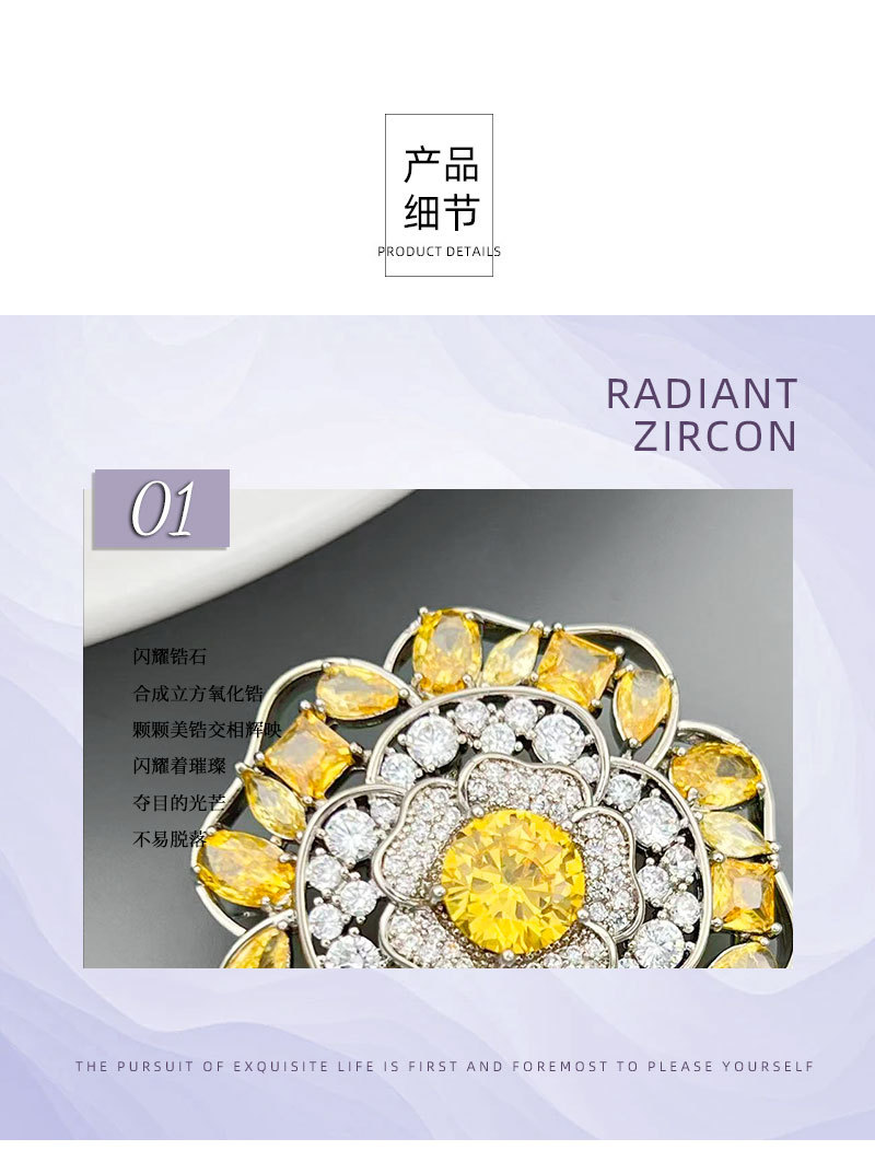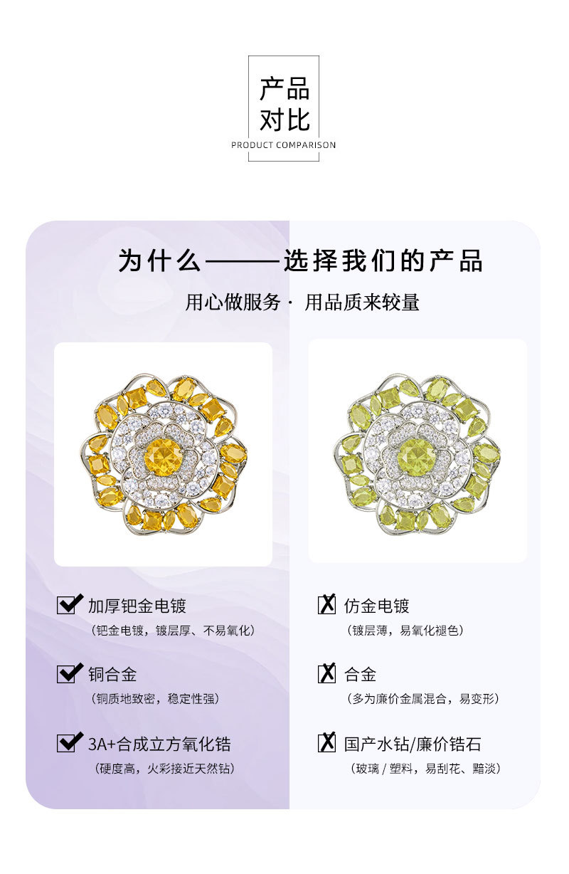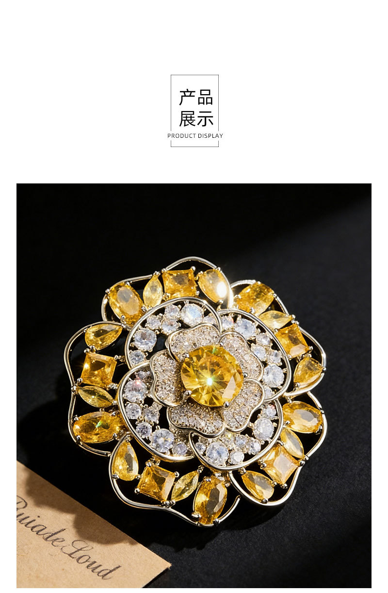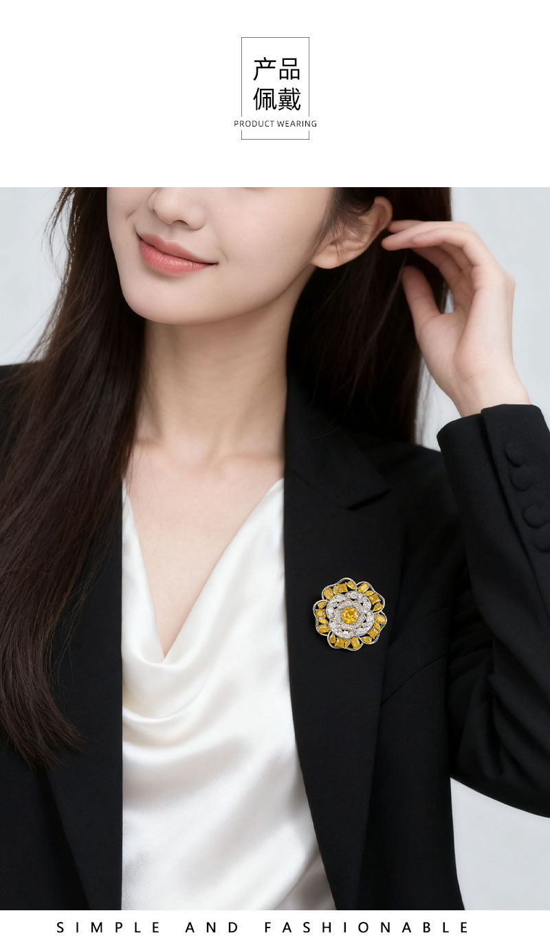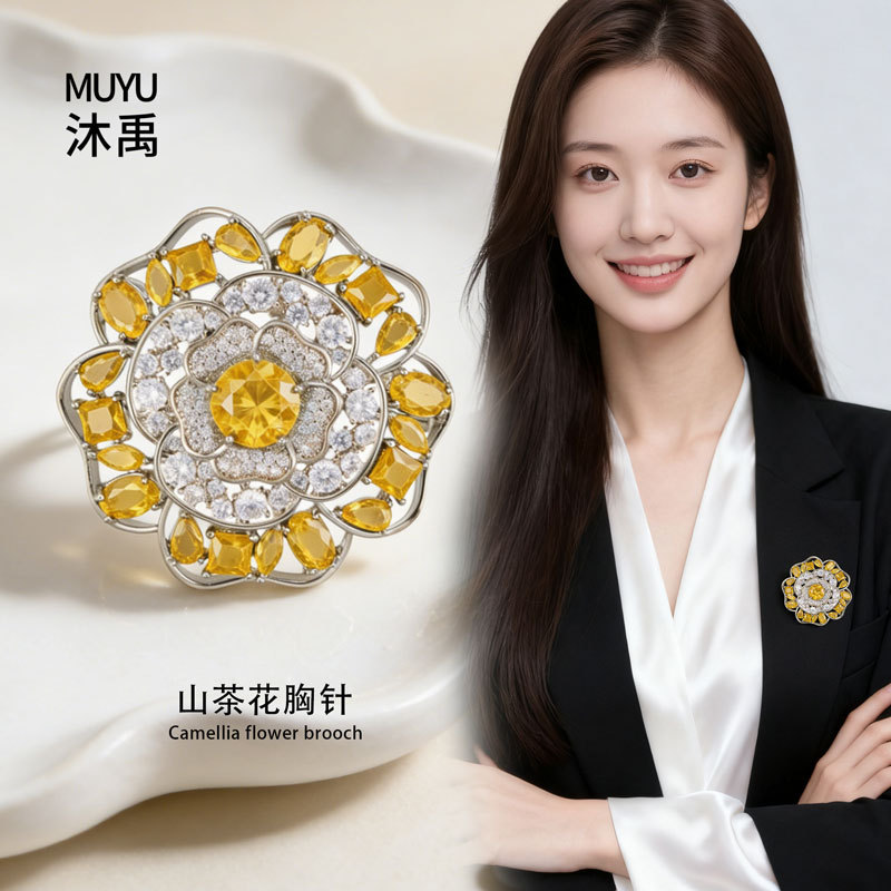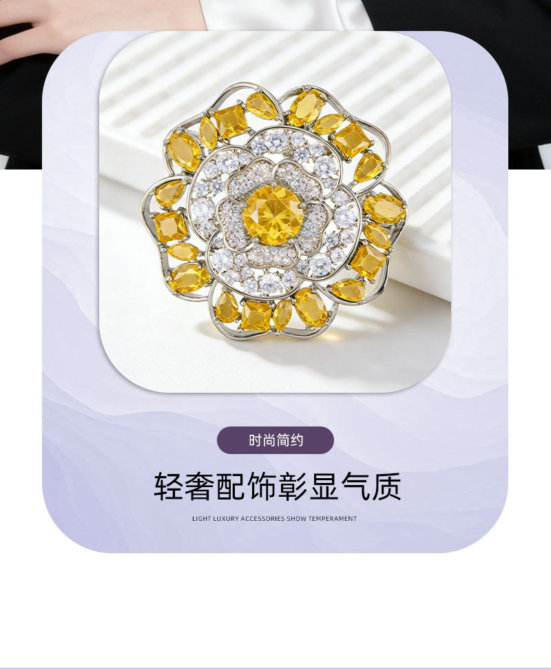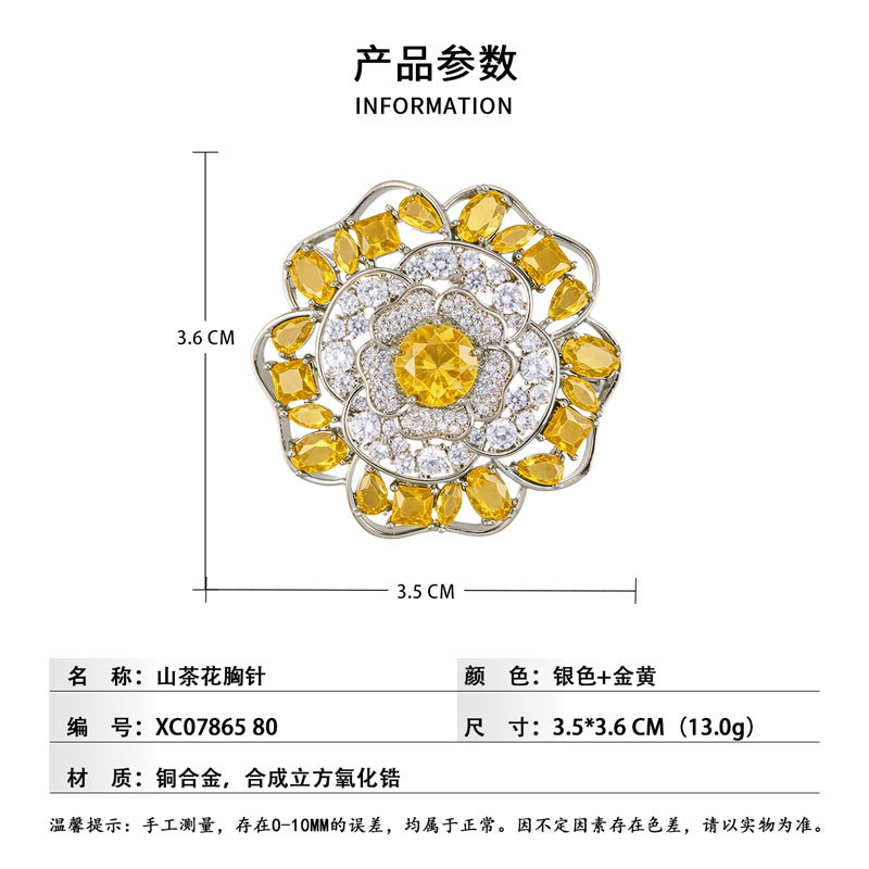 闪耀奢华微镶满锆山茶花胸针日常百搭立体镂空花朵铜合金精致别针 投诉