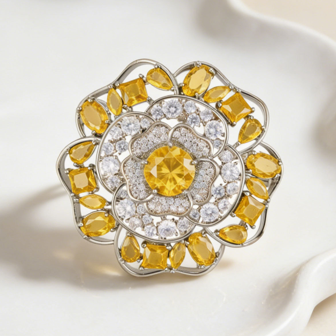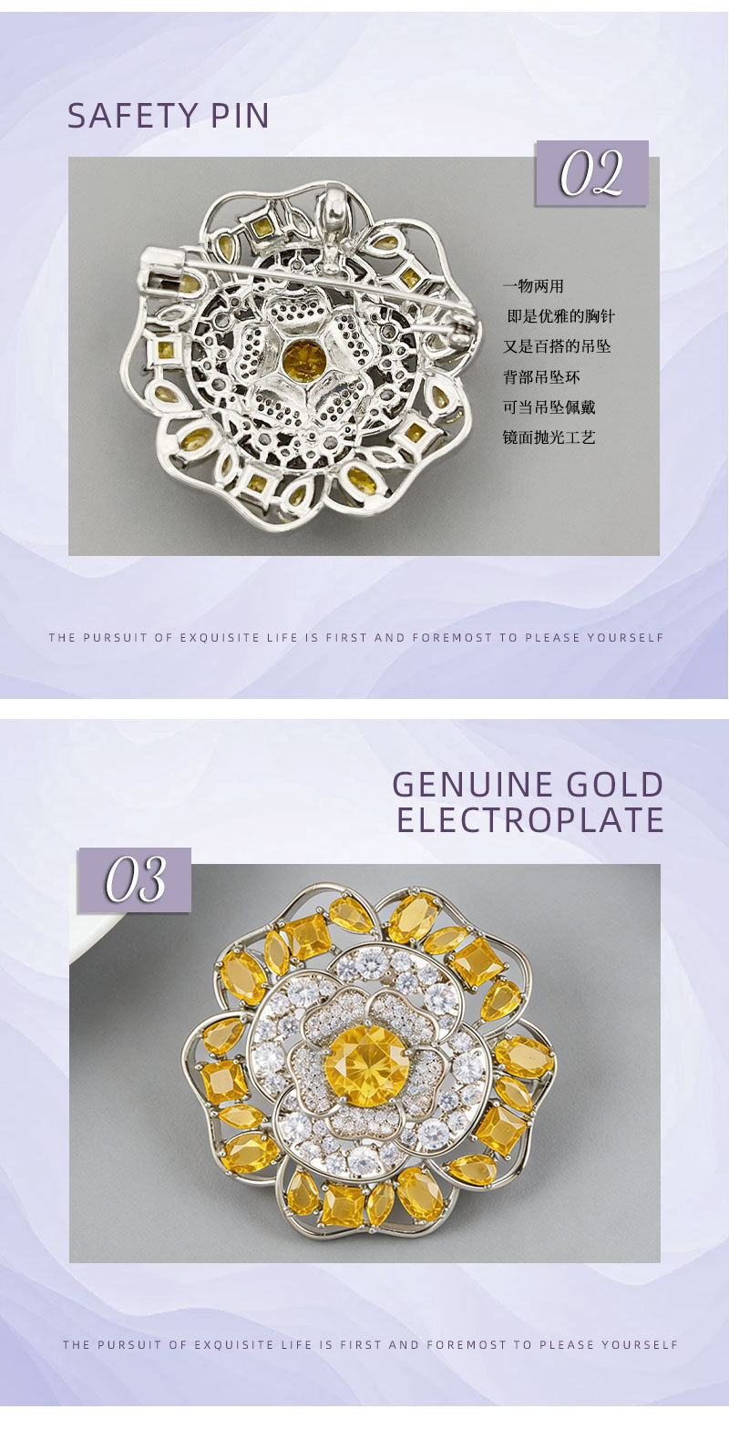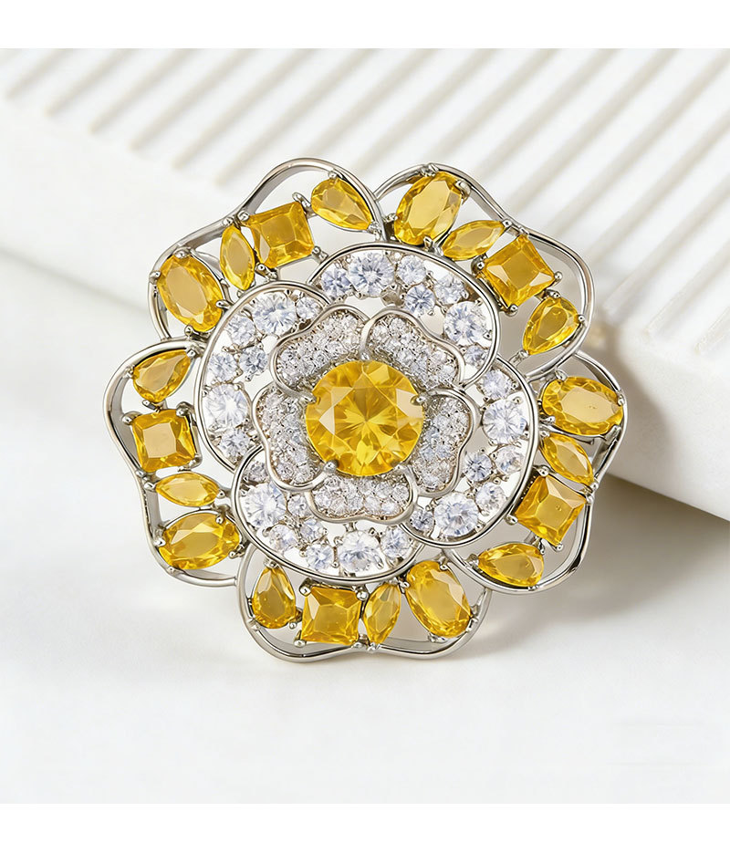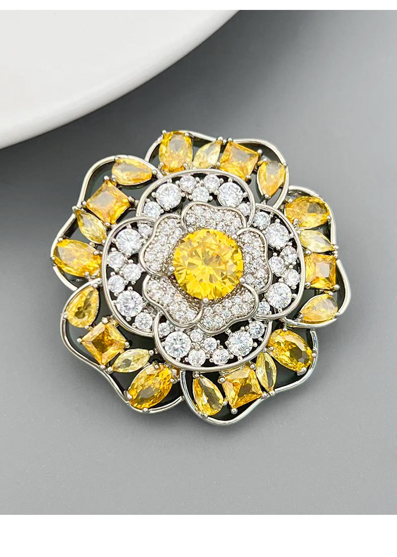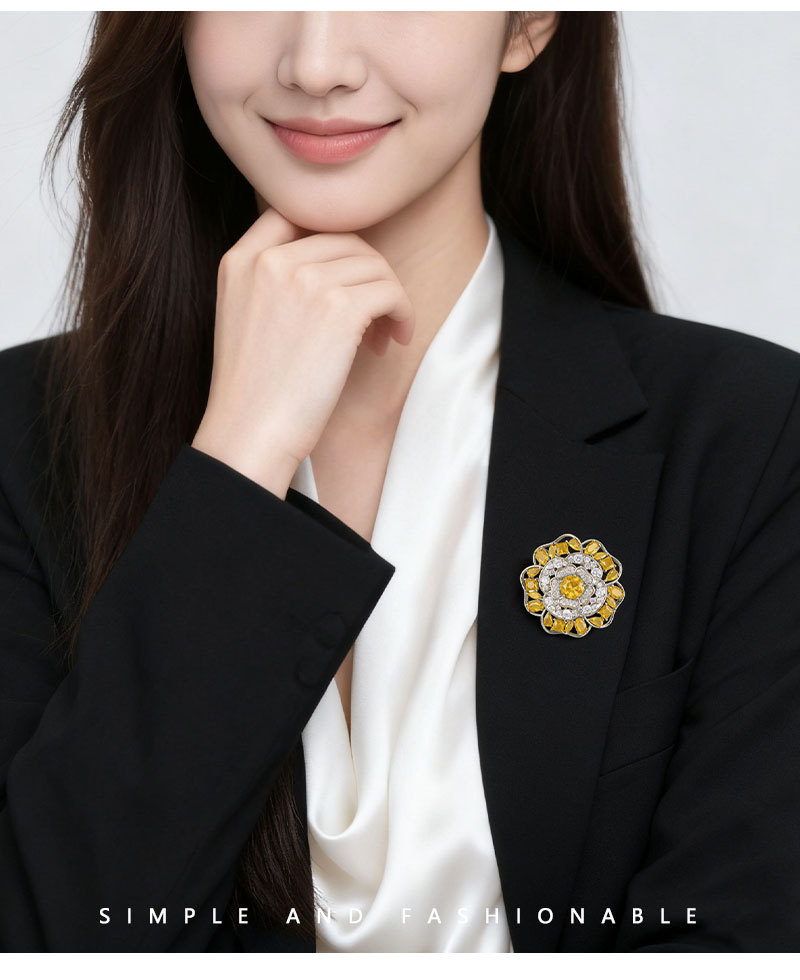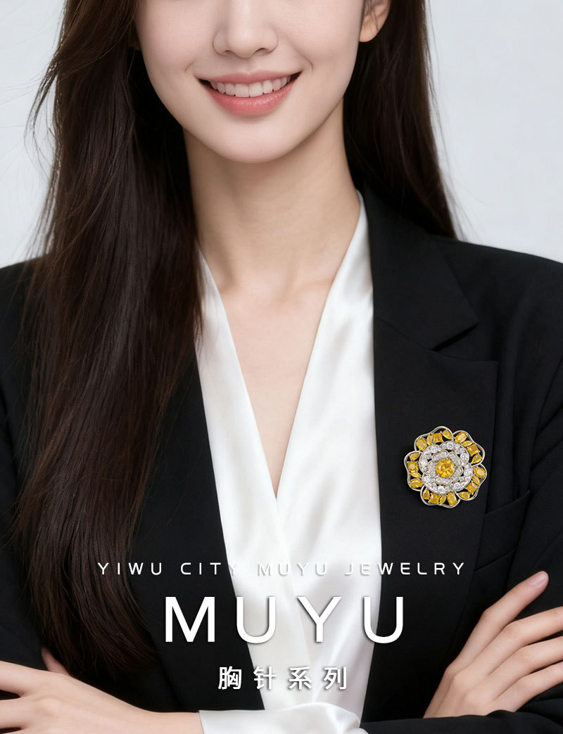 闪耀奢华微镶满锆山茶花胸针日常百搭立体镂空花朵铜合金精致别针 投诉