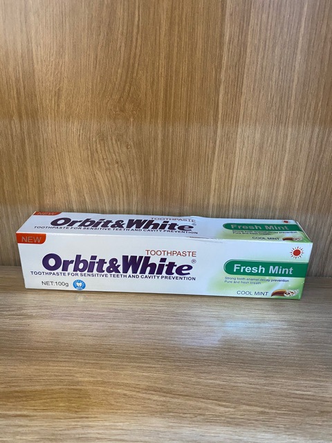 品牌: ORBIT&WHITE 功效: 口气清新 品牌类型: 国货品牌 净含量: 100g 香型: 薄荷 是否进口: 否 商品条形码: 222 功能: 美白 货号: 薄荷味牙膏 适用对象: 通用 产地: 广州 箱装数量: 72 保质期: 3年 规格类型: 100克 是否含氟: 否 是否量贩装: 否 主要下游平台: ebay,亚马逊,wish,速卖通,独立 主要销售地区: 其他 有可授权的自有品牌: 是 是否跨境出口专供货源: 是