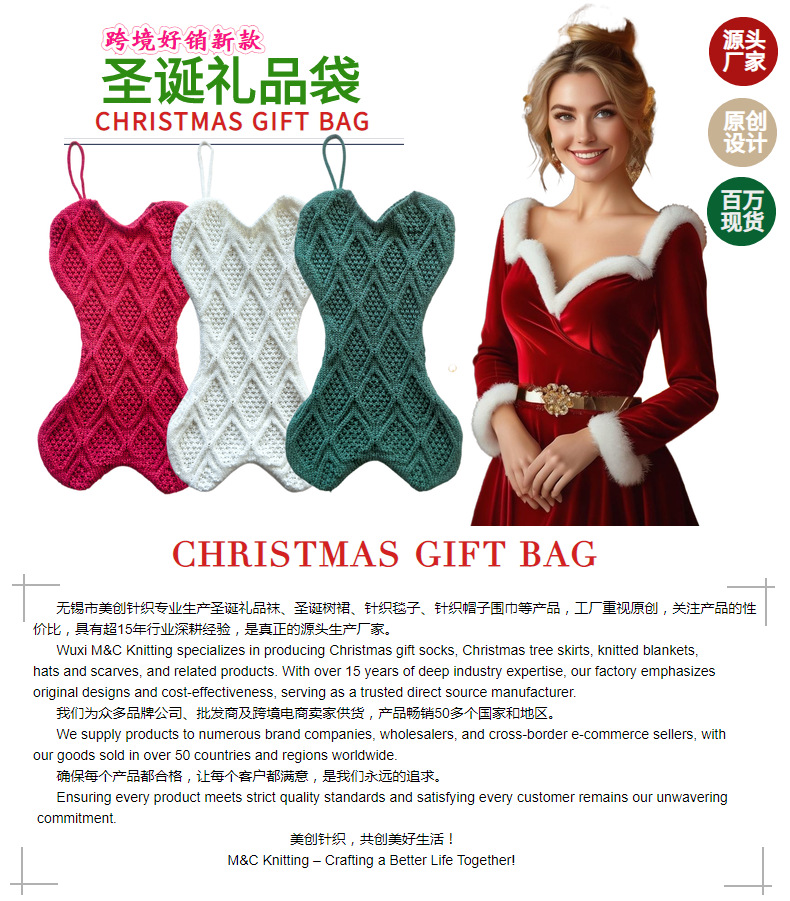 源头厂家供应针织圣诞袋圣诞节装饰袋,圣诞礼品袋,圣诞针织袜袋