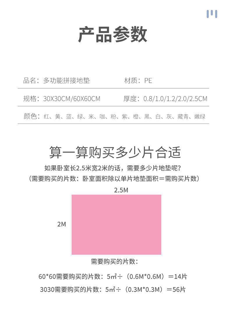 | 30*30厚2.5厘米(32片装)装 | ¥8798 | 995件可售 |