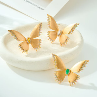 原创设计拉丝金色蝴蝶胸针时尚轻奢铜合金真金电镀镶锆石别针衣饰