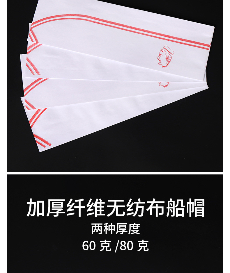 | 80克纸质红杠船帽(低帽 头围可调节 )50顶 | ¥1238 | 9692包可售 |
