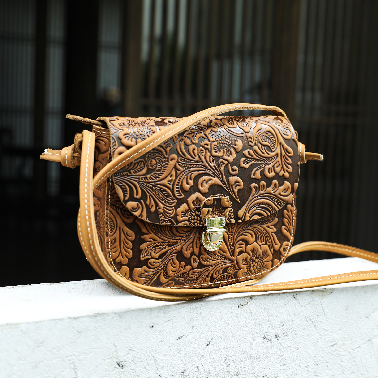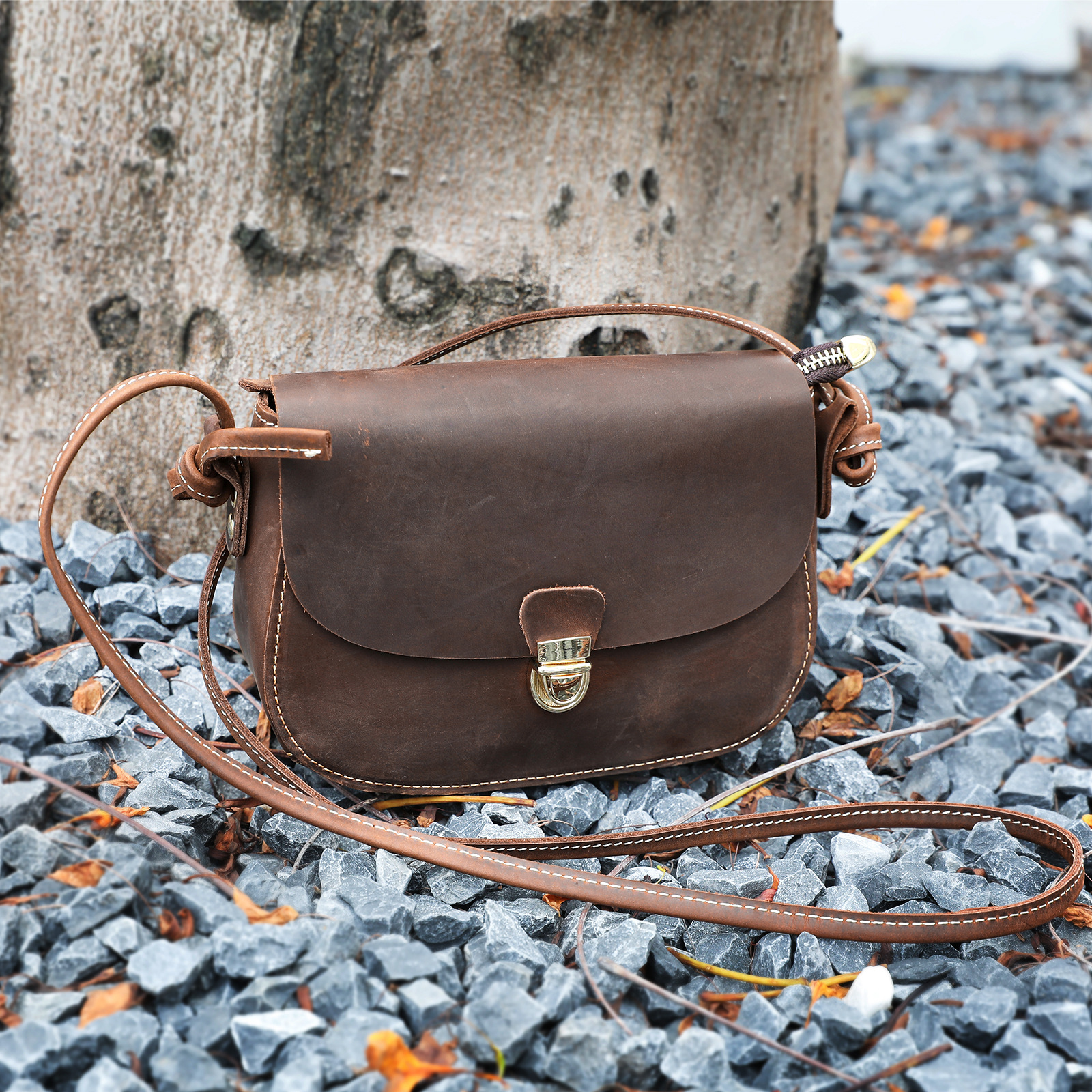 欧美复古手工头层牛皮单肩包女款简洁插锁小包斜挎手机包潮流包包