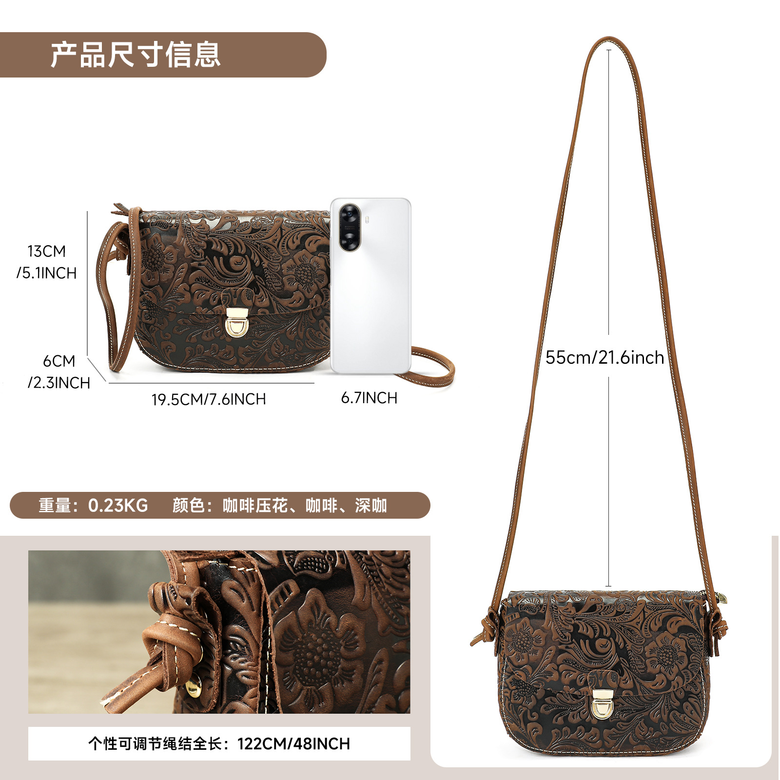 材质: 真皮 箱包潮流款式: 云朵包 箱包大小: 中 里料质地: 涤棉 皮质特征: 头层牛皮 品牌: MVA 风格: 国潮新风 流行元素: 其他 颜色: 咖啡,咖啡压花,深咖,棕色压花,红咖压花 货号: 7782 上市年份季节: 2025年春季 箱包形状: 椭圆形 开盖方式: 锁扣 包内部结构: 拉链暗袋 硬度: 中偏软 外袋种类: 立体袋 有可授权的自有品牌: 是 有无夹层: 有 肩带根数: 单根 适用场景: 日常搭配 重量: 0.26 kg/个