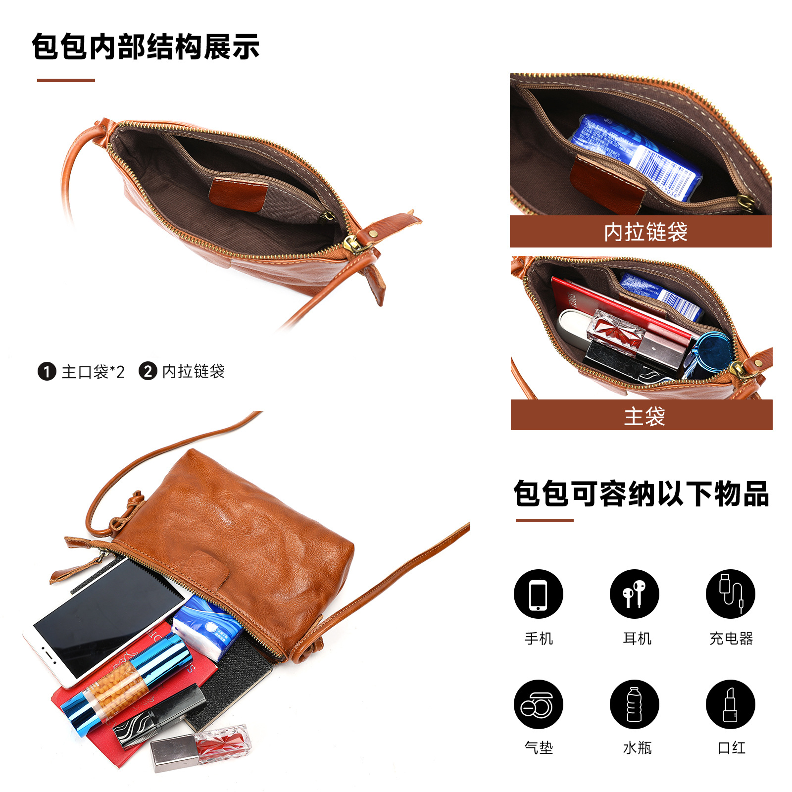 材质: 头层牛皮 箱包潮流款式: 单肩斜挎包 箱包大小: 中 里料质地: 涤棉 皮质特征: 头层牛皮 品牌: MVA 风格: 都市简约 流行元素: 纯色 颜色: 黑色,红色,咖啡,棕色,绿色 货号: 5030 上市年份季节: 2025年冬季 箱包形状: 横款方型 开盖方式: 拉链 包内部结构: 手机袋,夹层拉链袋 硬度: 中偏软 外袋种类: 挖袋 有可授权的自有品牌: 是 有无夹层: 无 肩带根数: 单根 尺寸: 20*6*12cm 重量: 0.3 kg/个