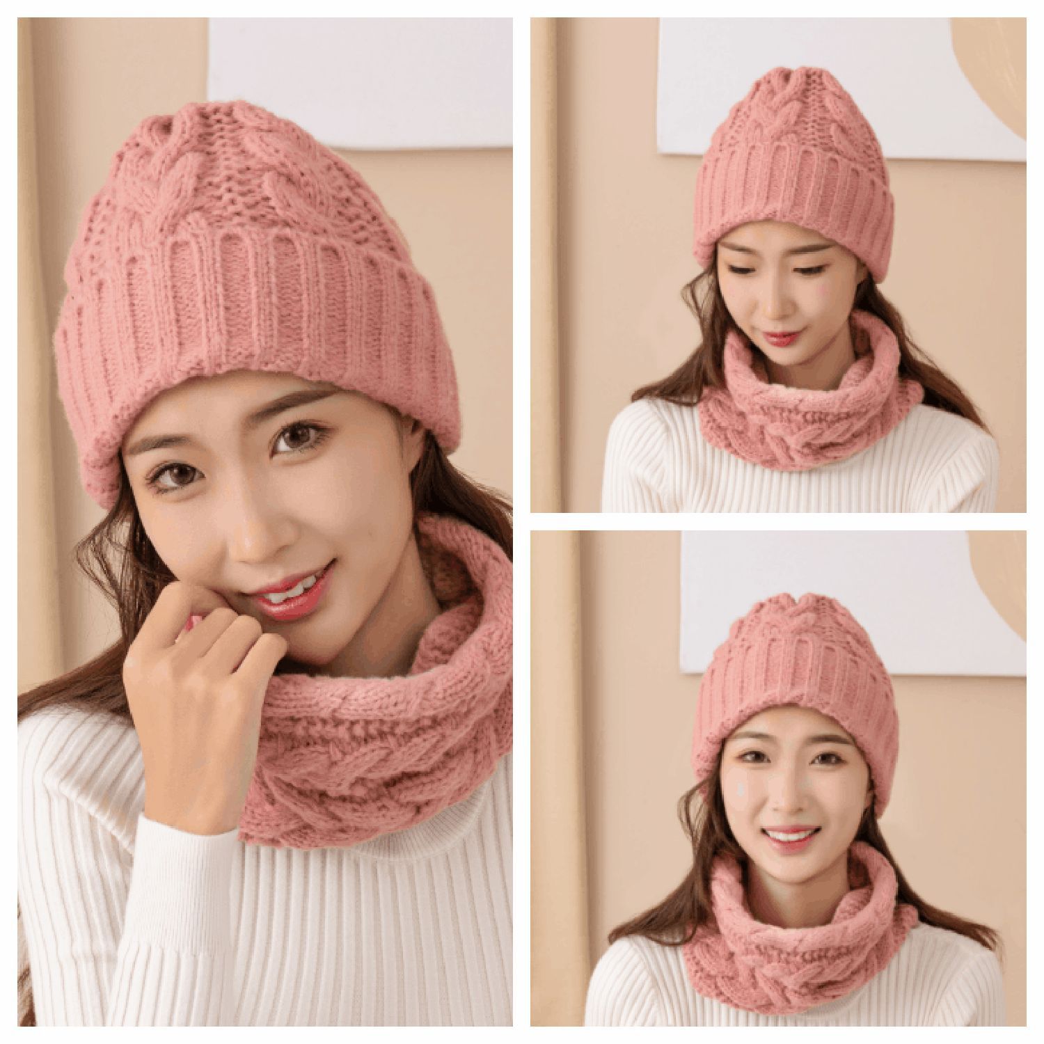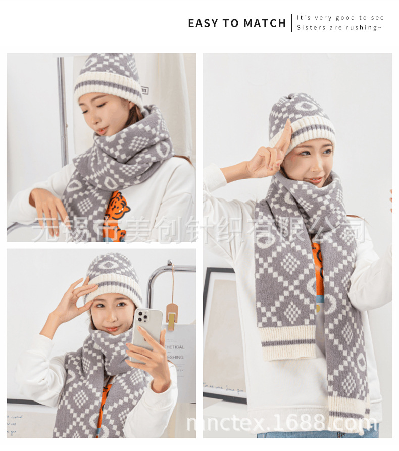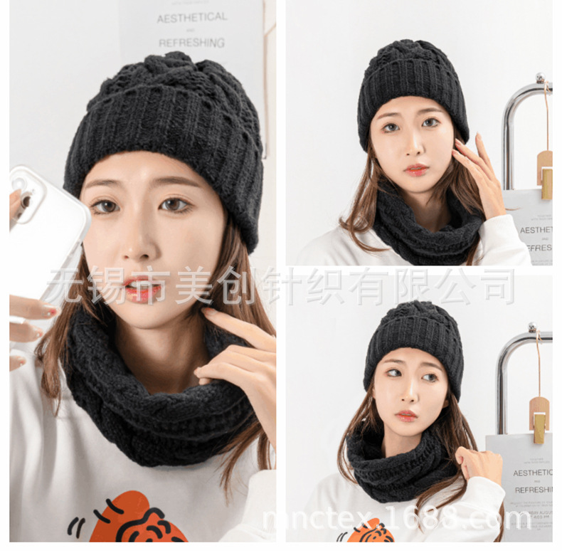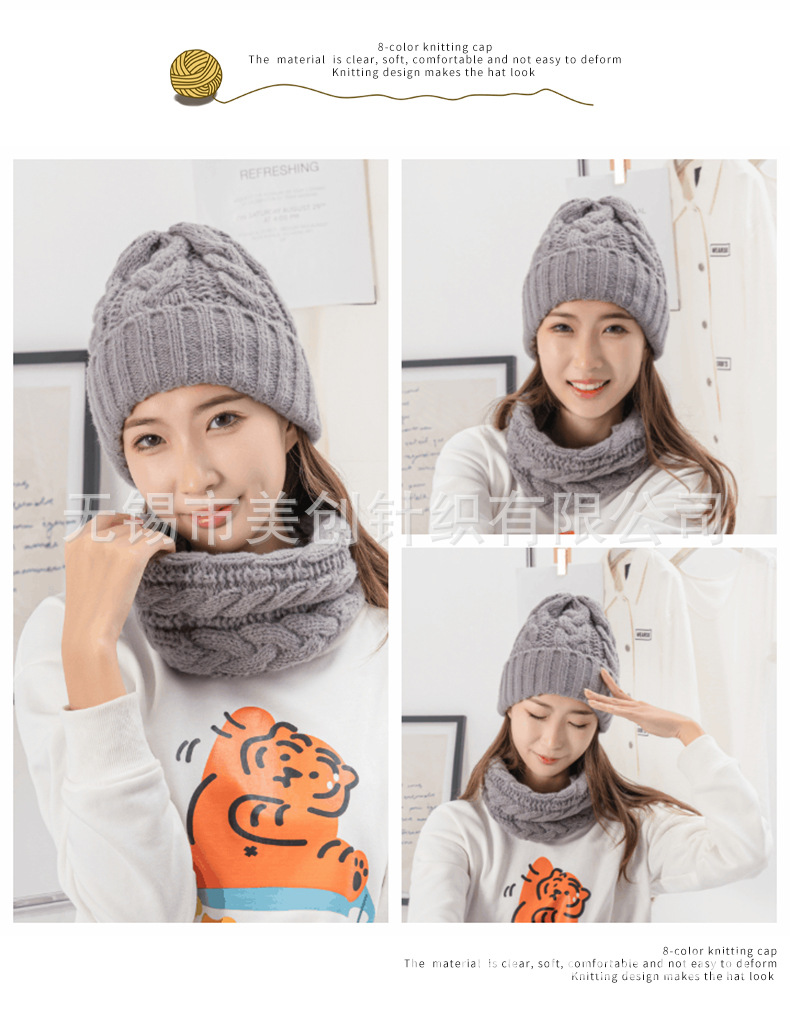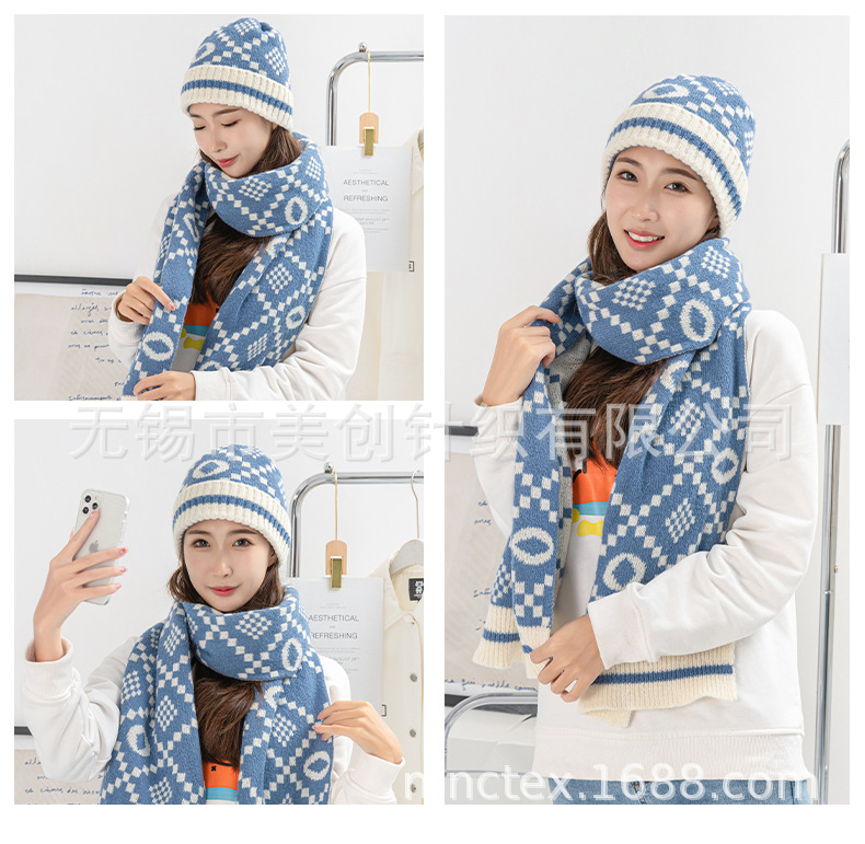厂家供应亚马逊跨境暴款针织冬帽针织围脖,时尚提花针织帽子围巾. 投诉