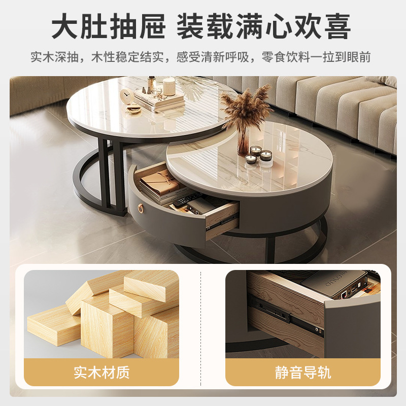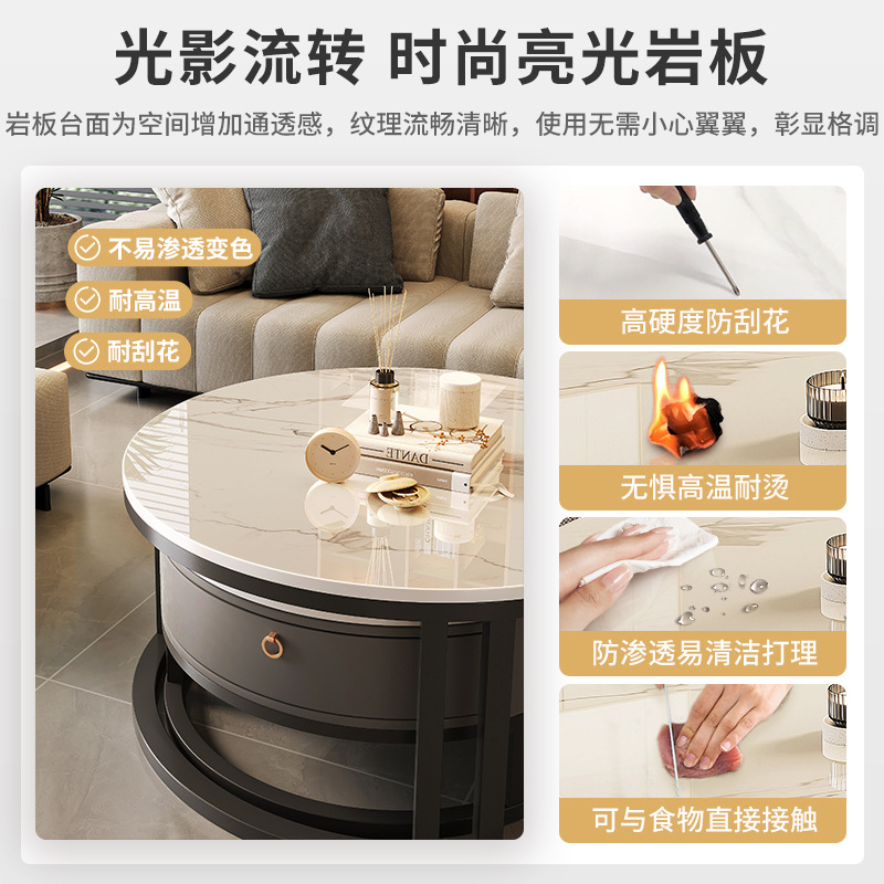 岩板茶几客厅家用高级感现代简约小户型实木圆形小茶几2024新款