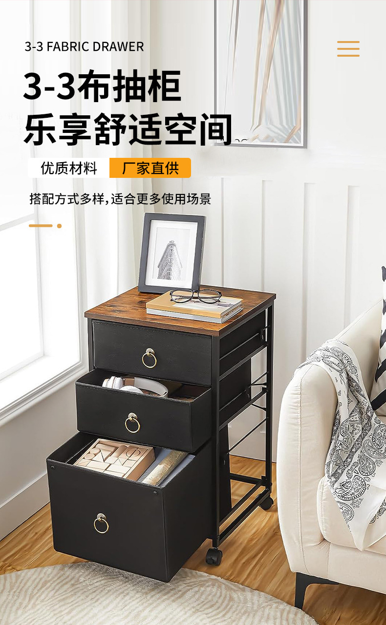 外贸DZ源头厂家直供3-3布抽柜3层收纳柜可当床头柜适用于卧室客厅